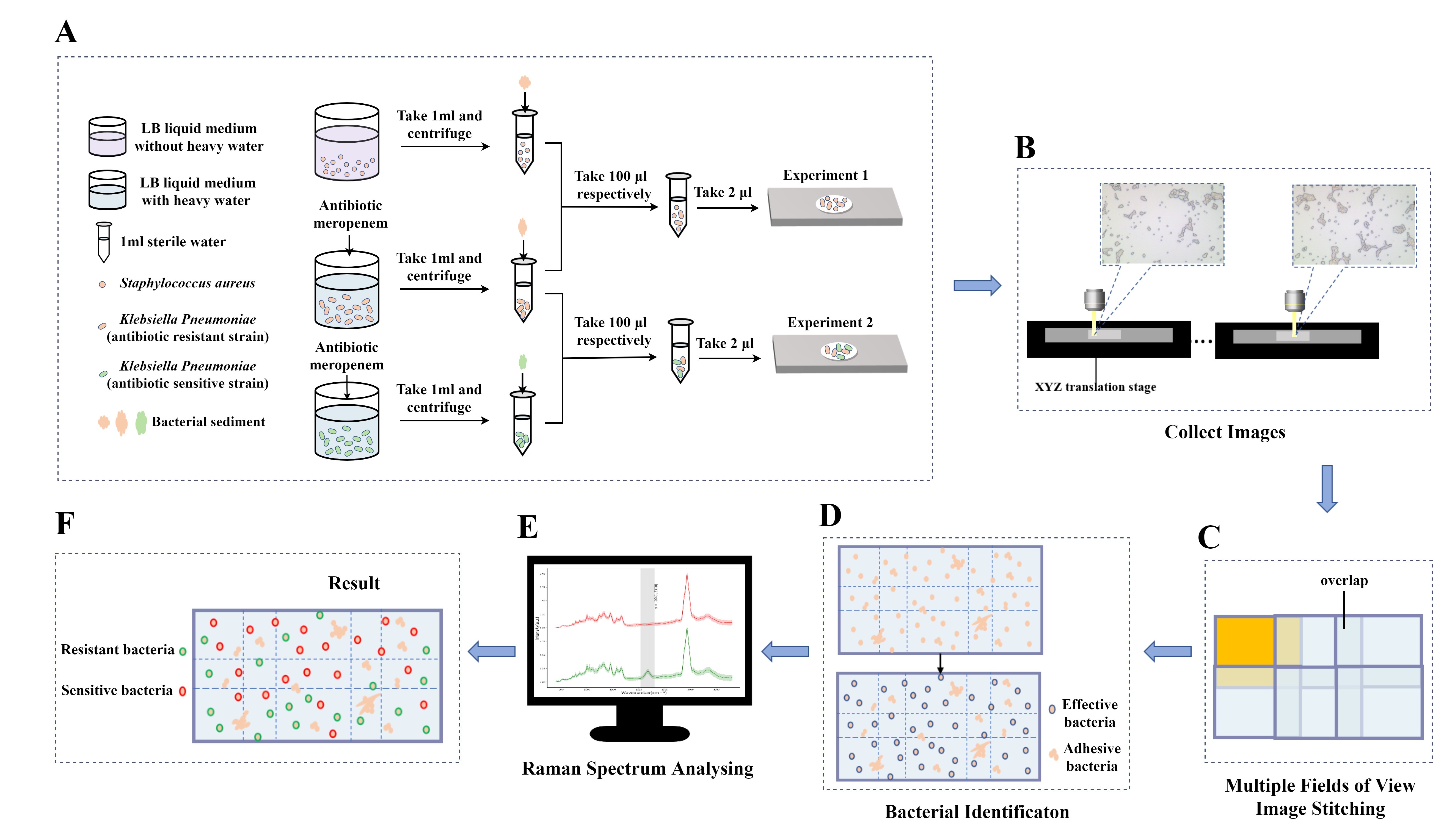 Configure Luria-Bertani (LB) liquid medium with a 30% concentration of heavy water (Sigma-Aldrich). The Klebsiella pneumoniae resistant strains and Klebsiella pneumoniae sensitive strains were cultured in a 30% heavy water medium, in which the antibiotic meropenem was added at a concentration of 8 µg/µL and cultured overnight at 37 °C. Staphylococcus aureus was cultured using LB medium and culture at 37 °C overnight.