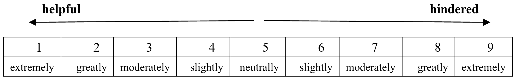 | How much did this event help or hinder you? Please follow the scale below to assess this: |