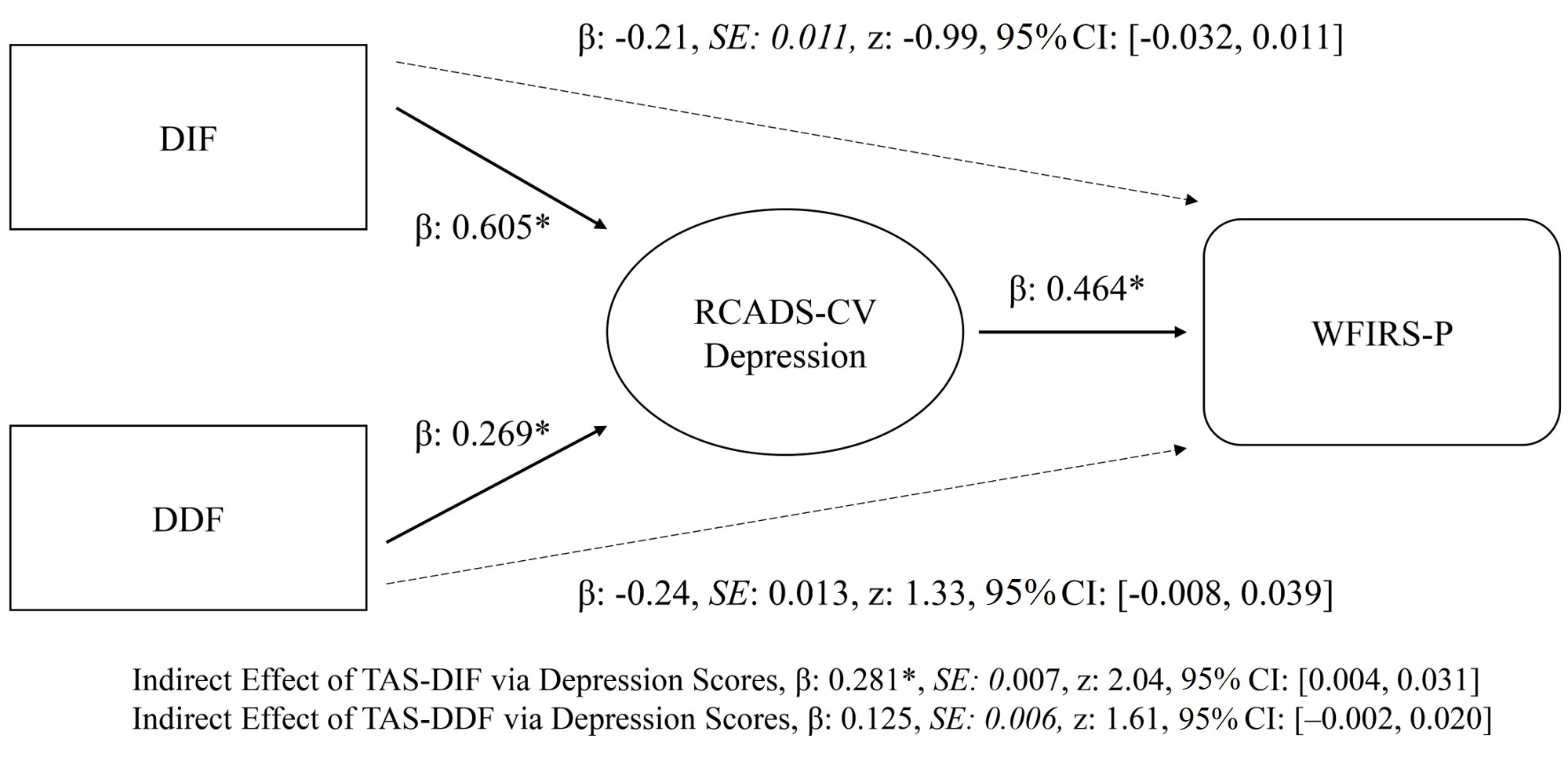 Alexithymia is associated not only with the severity of EDs but also with depression, as demonstrated by a meta-analysis that reported moderate correlations between difficulties in identifying and describing feelings and depressive symptoms [28]. Alexithymia may function as a precursor to depression or, conversely, may arise as a consequence of diminished emotional awareness. The high comorbidity with anxiety and depression further complicates the clinical presentation of EDs [21, 28, 29, 30]. Functional impairment resulting from ED symptoms has been shown to predict later depressive symptoms, underscoring the multidimensional and intricately interrelated nature of depression, anxiety, and ED symptoms [15, 31]. However, there is a notable lack of studies, particularly those involving adolescent samples, that examine the relationship between alexithymia and functional impairment in EDs. Given the substantial role of depression in contributing to functional impairment across psychiatric conditions, it is crucial to clarify the pathways through which alexithymia influences functional outcomes in adolescents with EDs. From a theoretical perspective, disentangling the respective roles of alexithymia and depression in shaping impairment may help identify distinct mechanisms, and elucidating these differences remains a key objective.