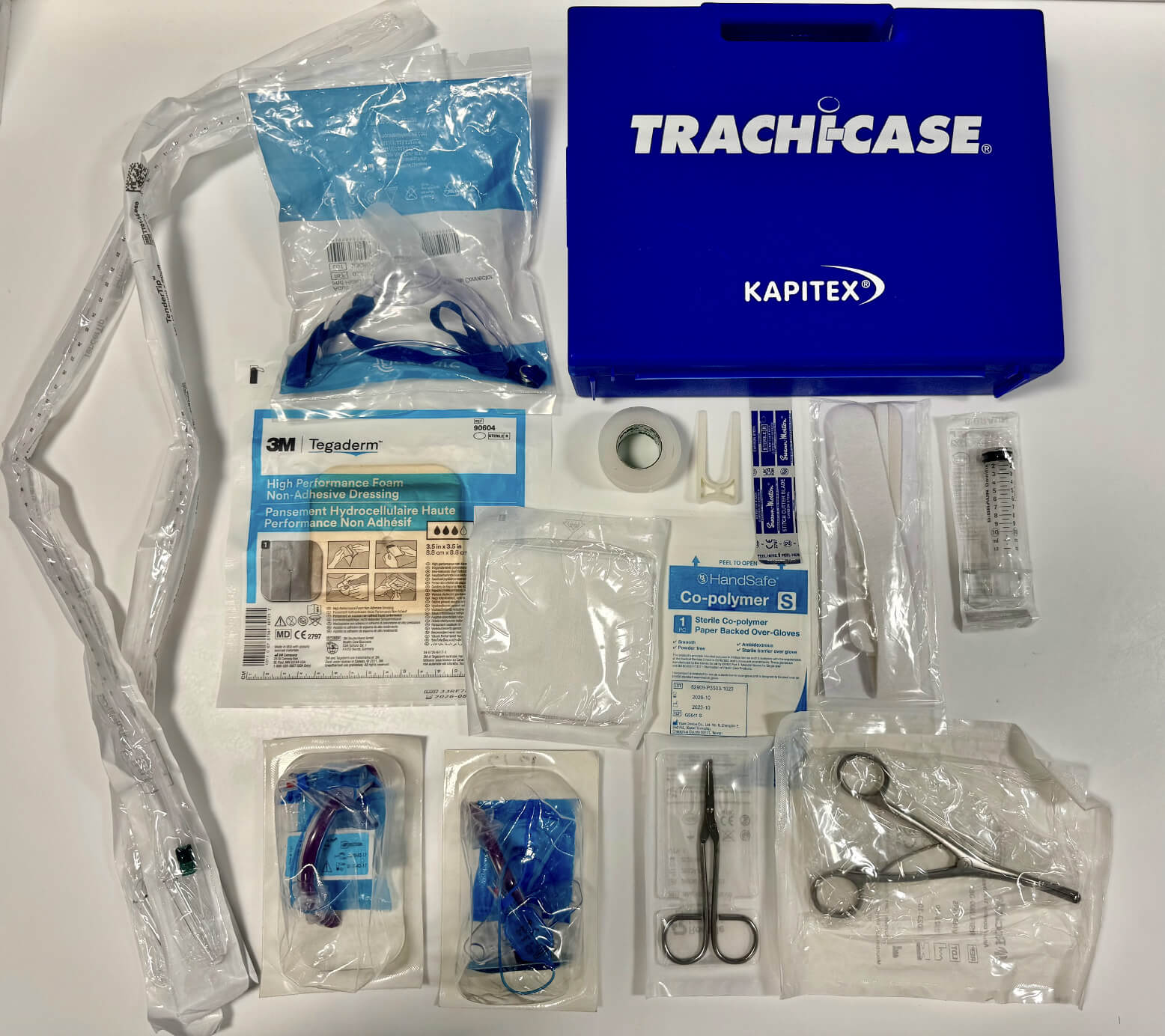 The ‘Blue box’: All patients with a tracheostomy should always have a ‘Blue box’ (or Trachi-case) by the bedside. As per Fig. 6, it contains all the necessary equipment to manage and change the tube in an emergency.
