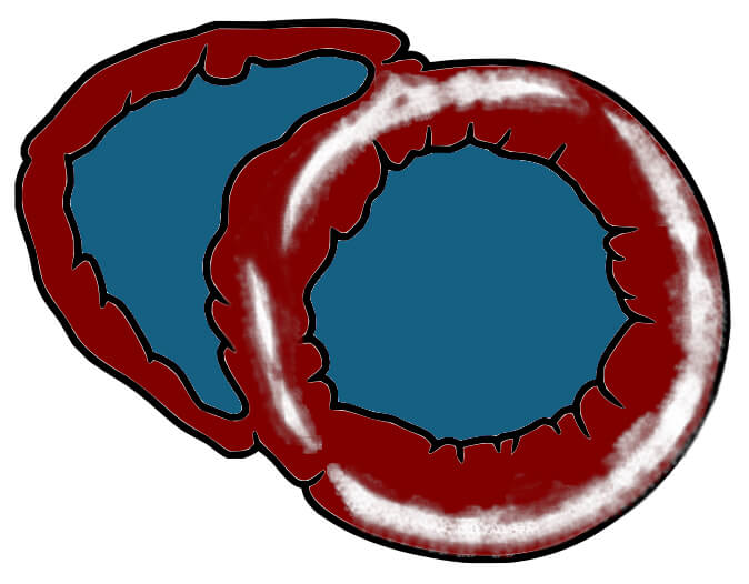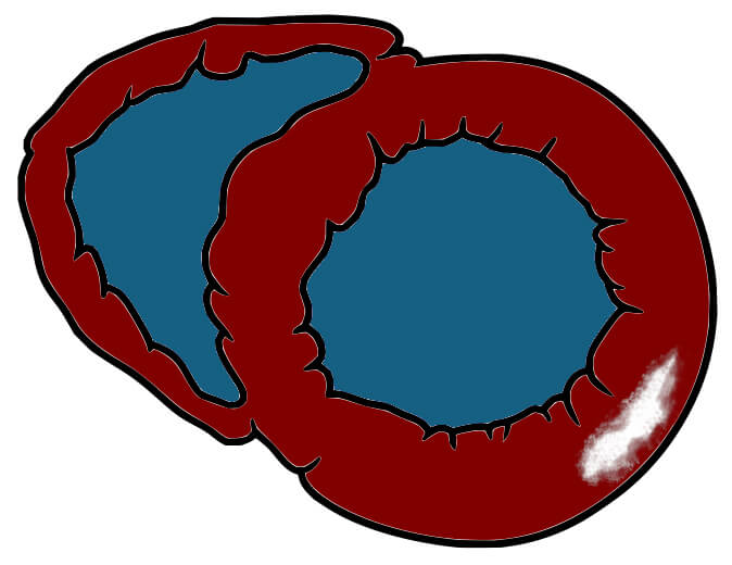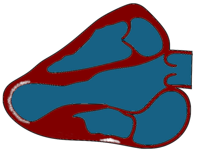 | Basal short-axis illustration with near global mid-wall to epicardial LGE |
