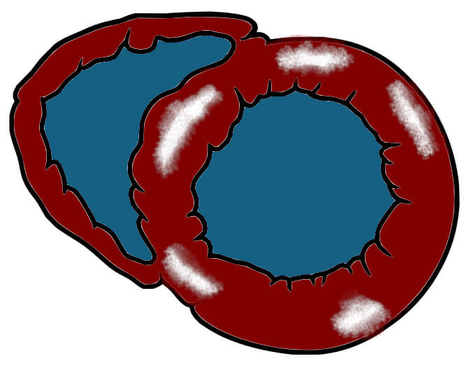 3—Diffuse patchy late enhancement Basal short-axis illustration with diffuse patchy mid-wall LGE |