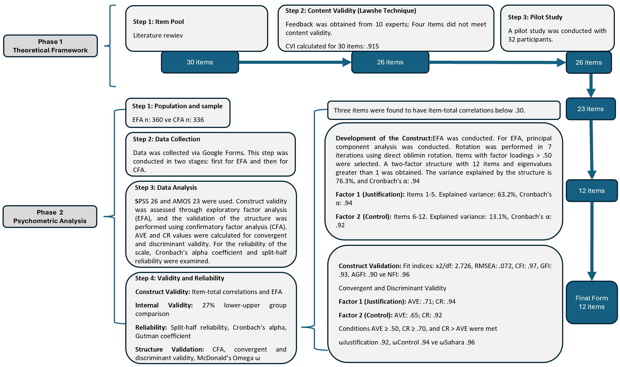 The development process of the scale was conducted in two phases. The initial phase of the tool development process was conceptualisation, while the subsequent phase involved psychometric evaluation procedures (see Fig. 1).