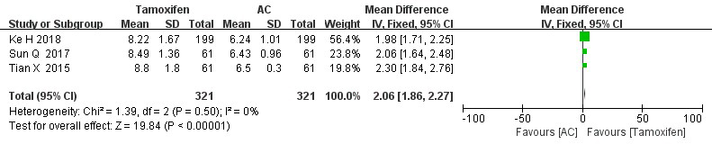 [26, 27, 28]. The pooled analysis showed the beneficial effect of TMX on the EMT (WMD