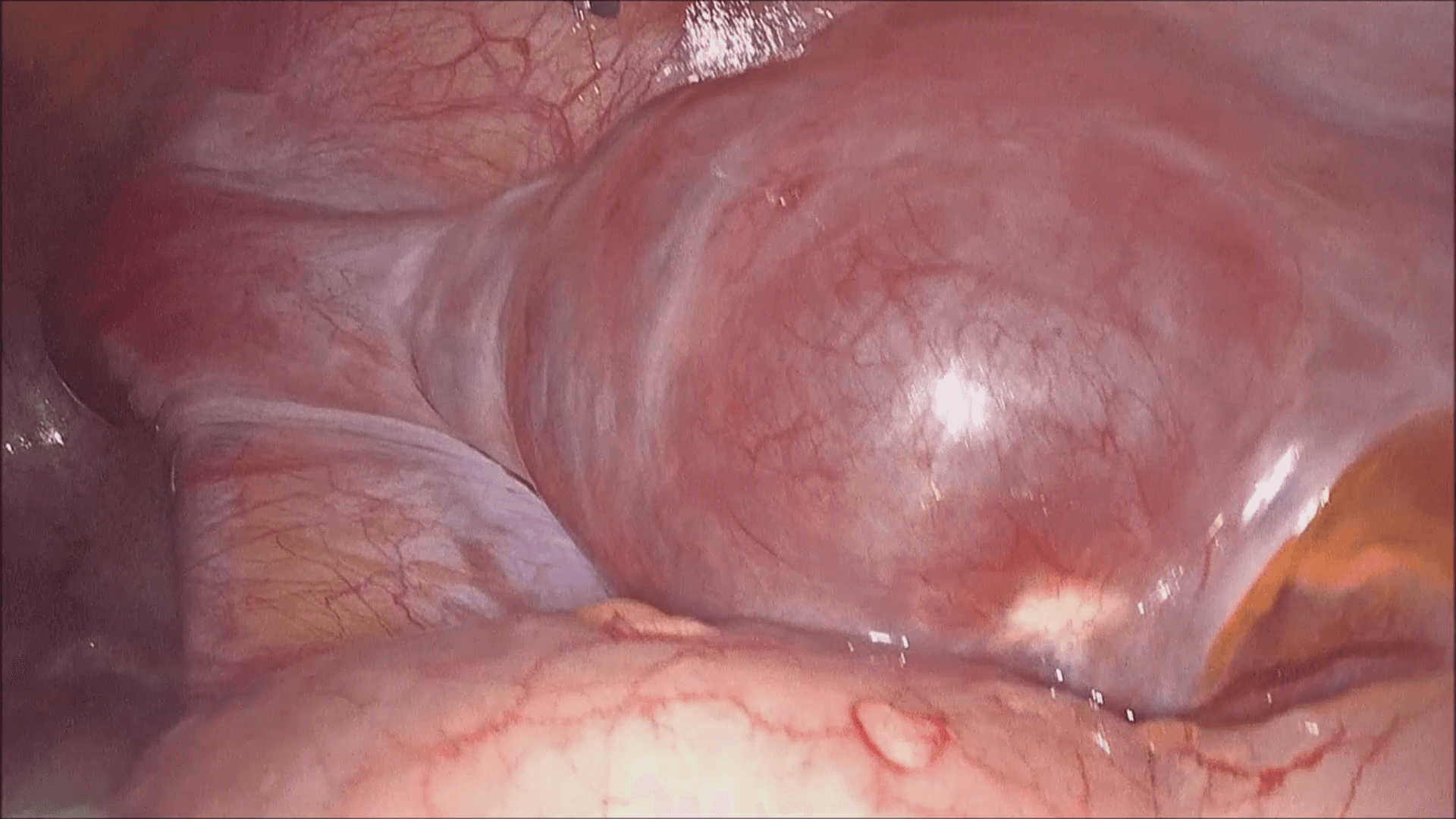 Fig. 2.Left ovary. Left ovary increased in volume with rudimentary left uterus.