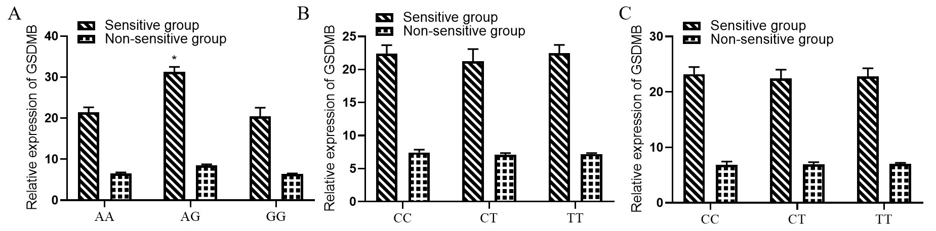 non-sensitive group based on the chemoradiation therapy outcomes. GSDMB