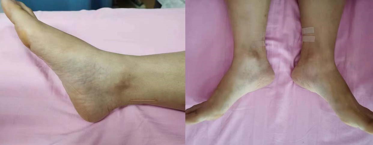 Fig. 1.Wrist-ankle acupuncture inserted into point 1.