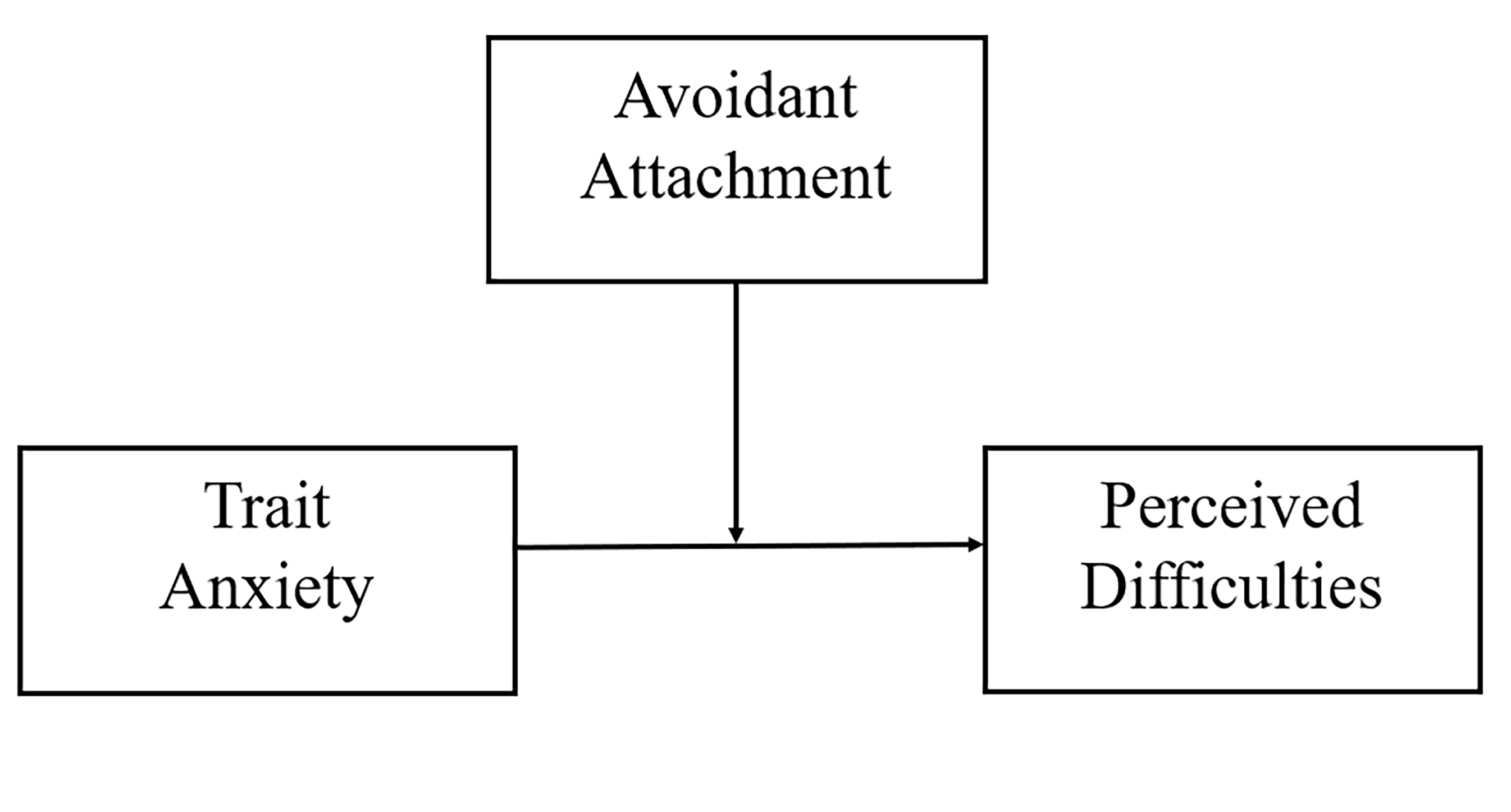 Fig. 1.Moderation model: Avoidant attachment as moderator in the relationship between trait anxiety and the perceived global difficulties.