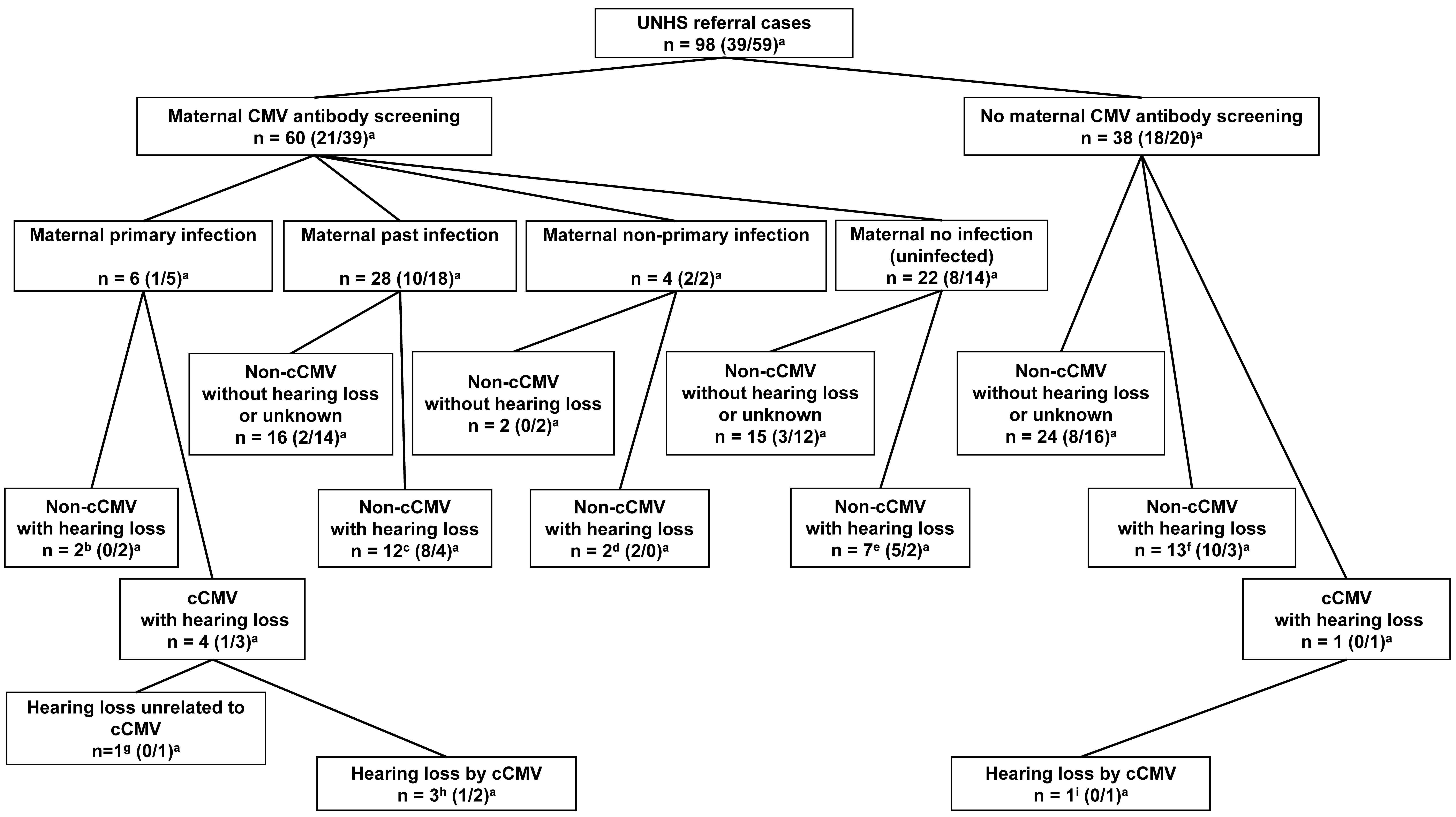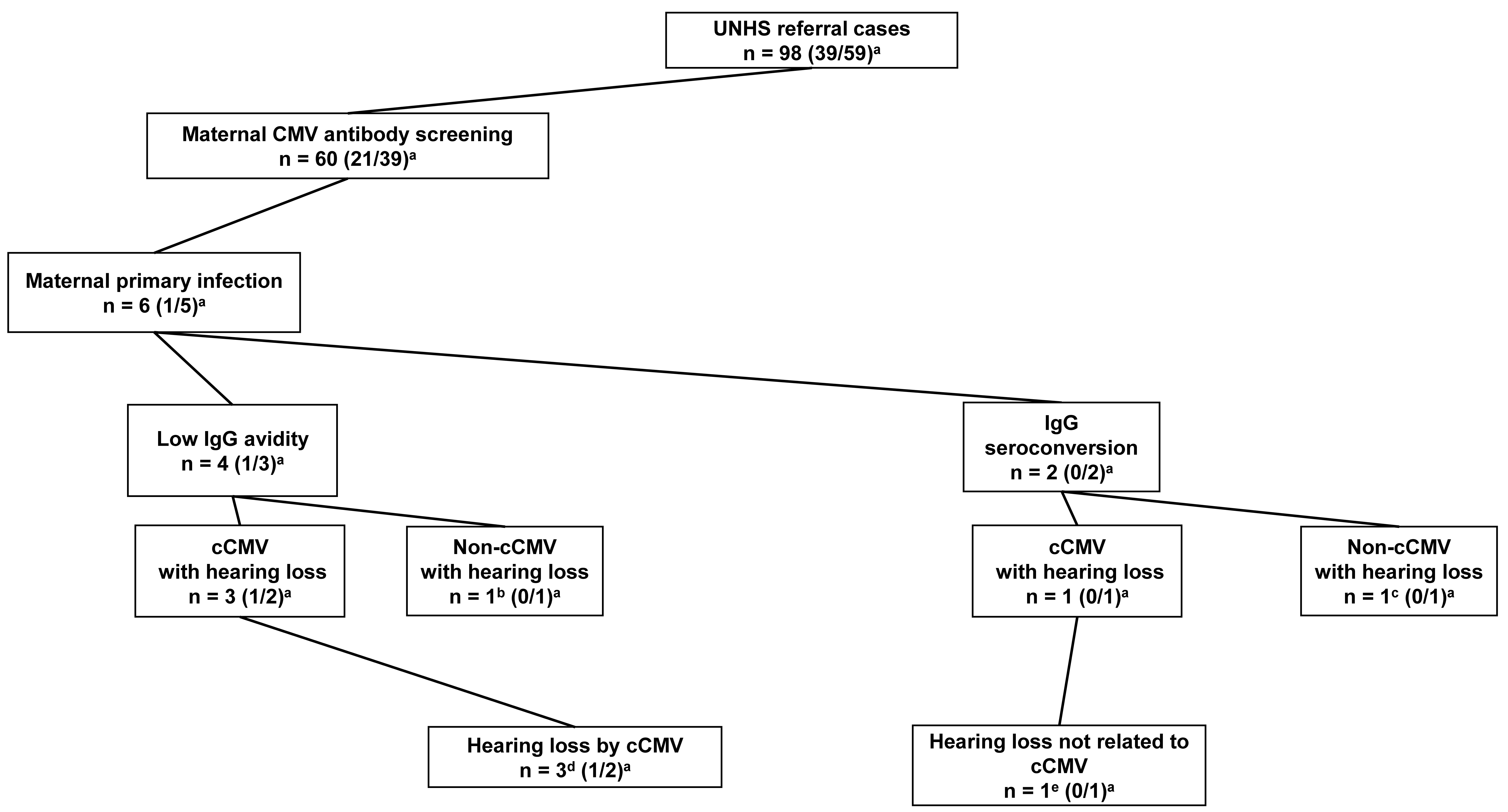 screening (UNHS) referral patients. We examined maternal cytomegalovirus antibody