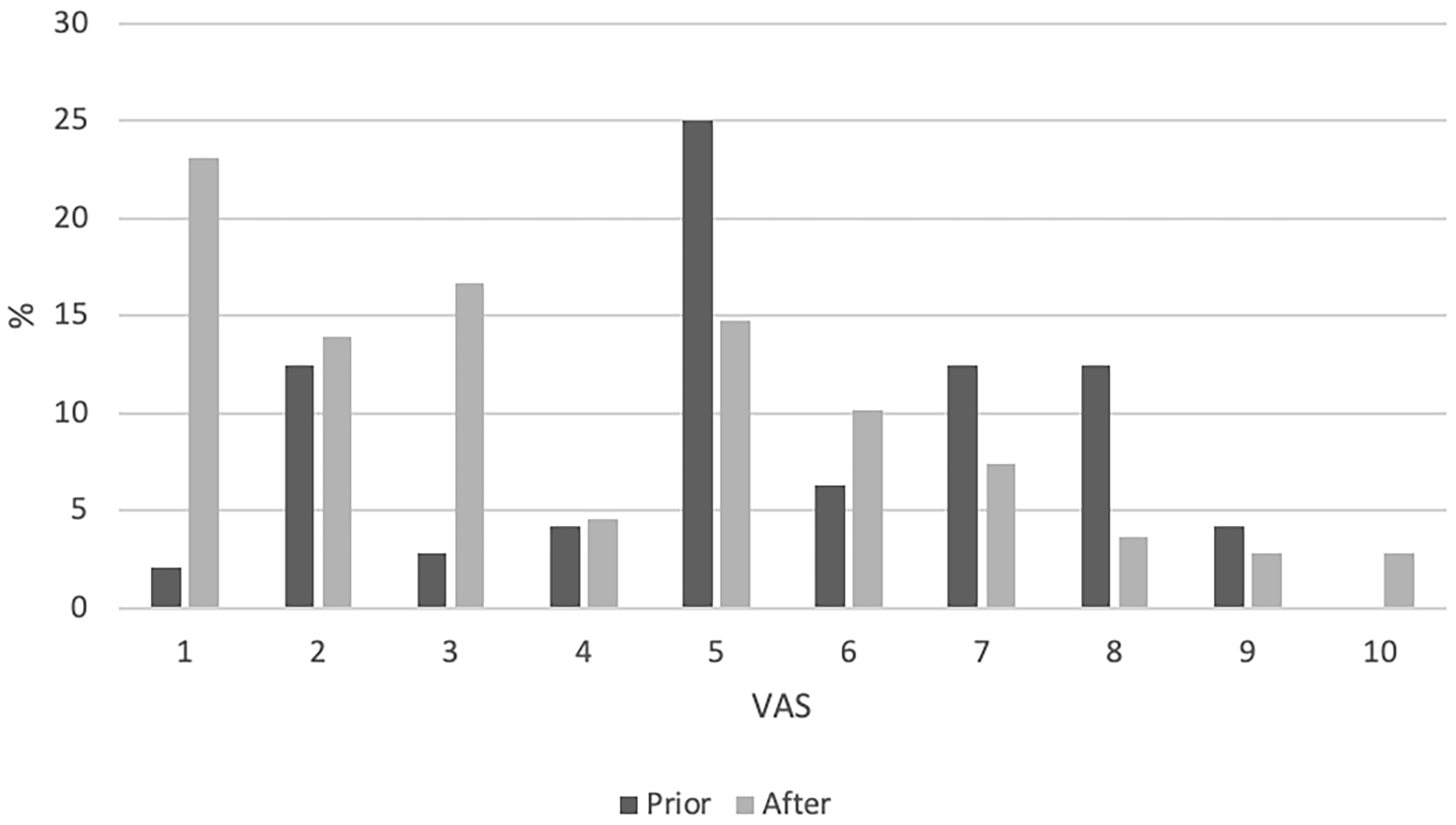 Fig. 3.Pain prior to and after IUS placement.