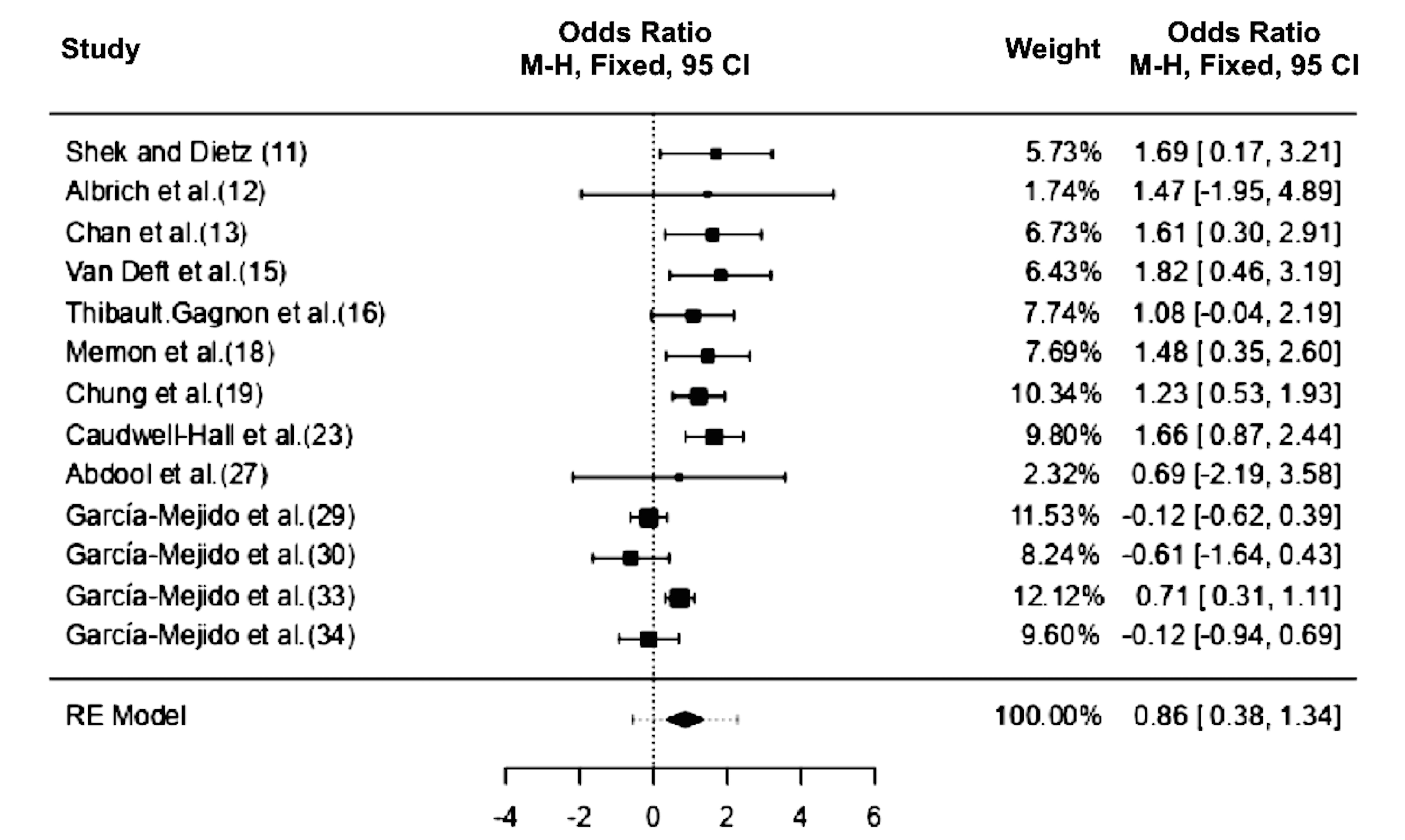 | García-Mejido et al. [25] | 2017 | Prospective | 6 months | 146 | 73 | 9.6% | 73 | 34.2% | - | - | 4.90 (1.95–12.18) | - | - |