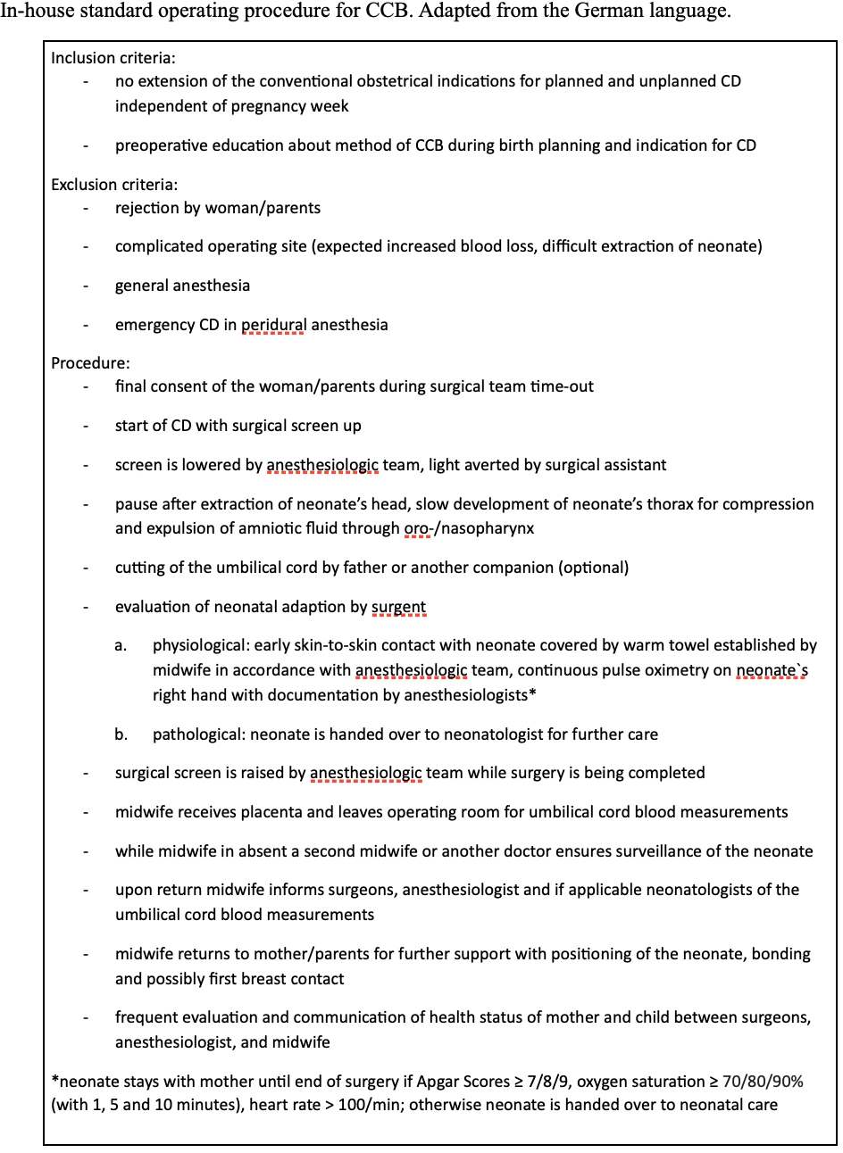 Fig. 1.In-house standard operating procedure for CCB. Adapted from the German language.