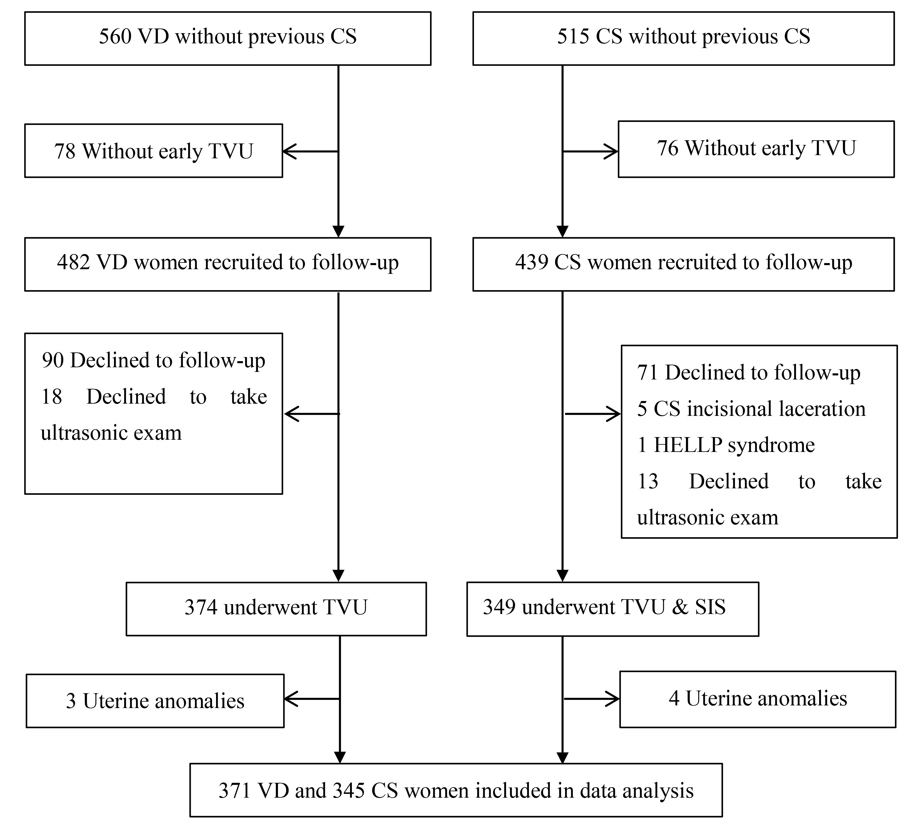 evaluating 921 women (482 underwent vaginal delivery and 439 underwent CS) who