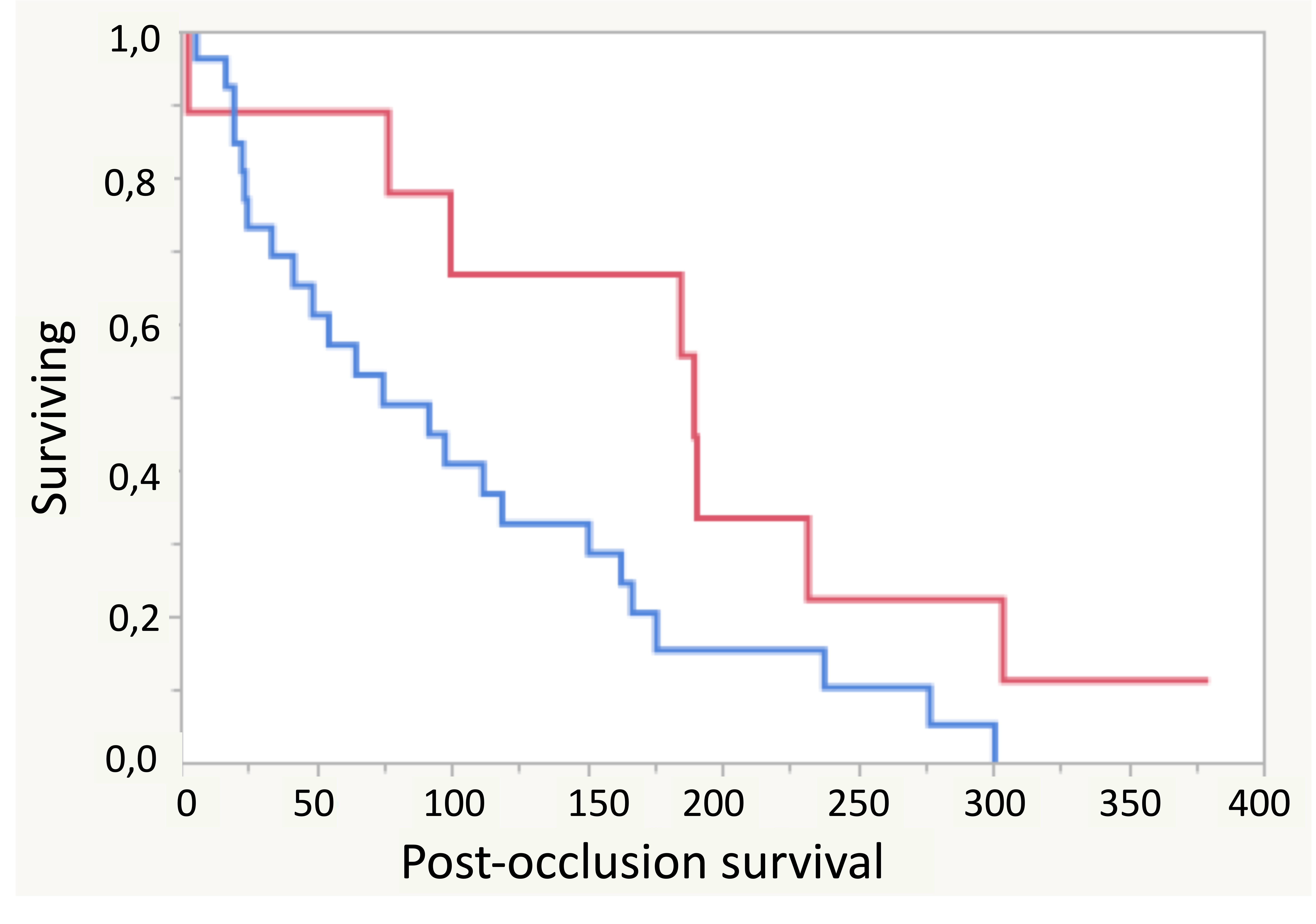 Overall, post-occlusion survival was longer in surgical patients than in