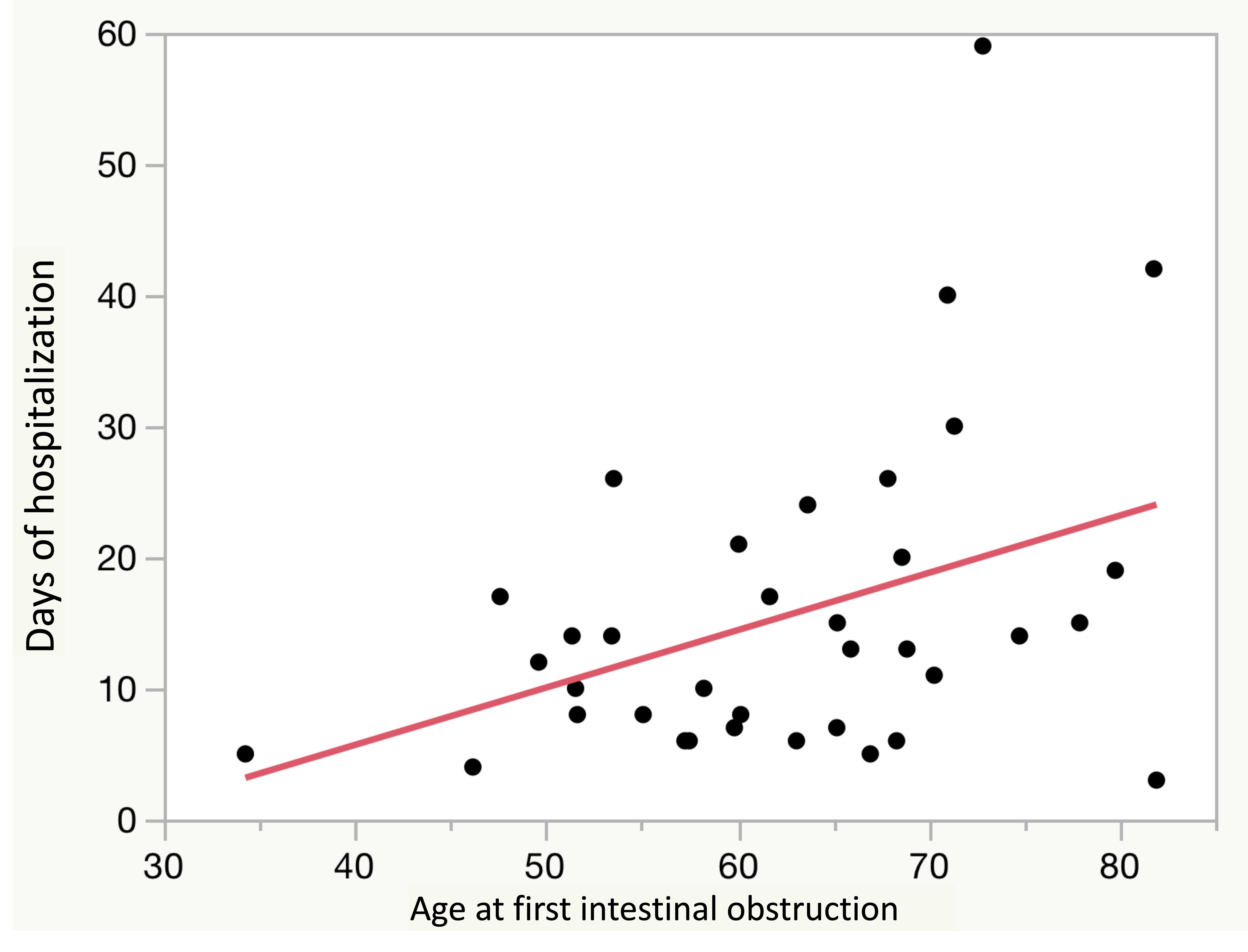Fig. 4.Distribution of hospitalization days according to the intestinal occlusion diagnosis age.