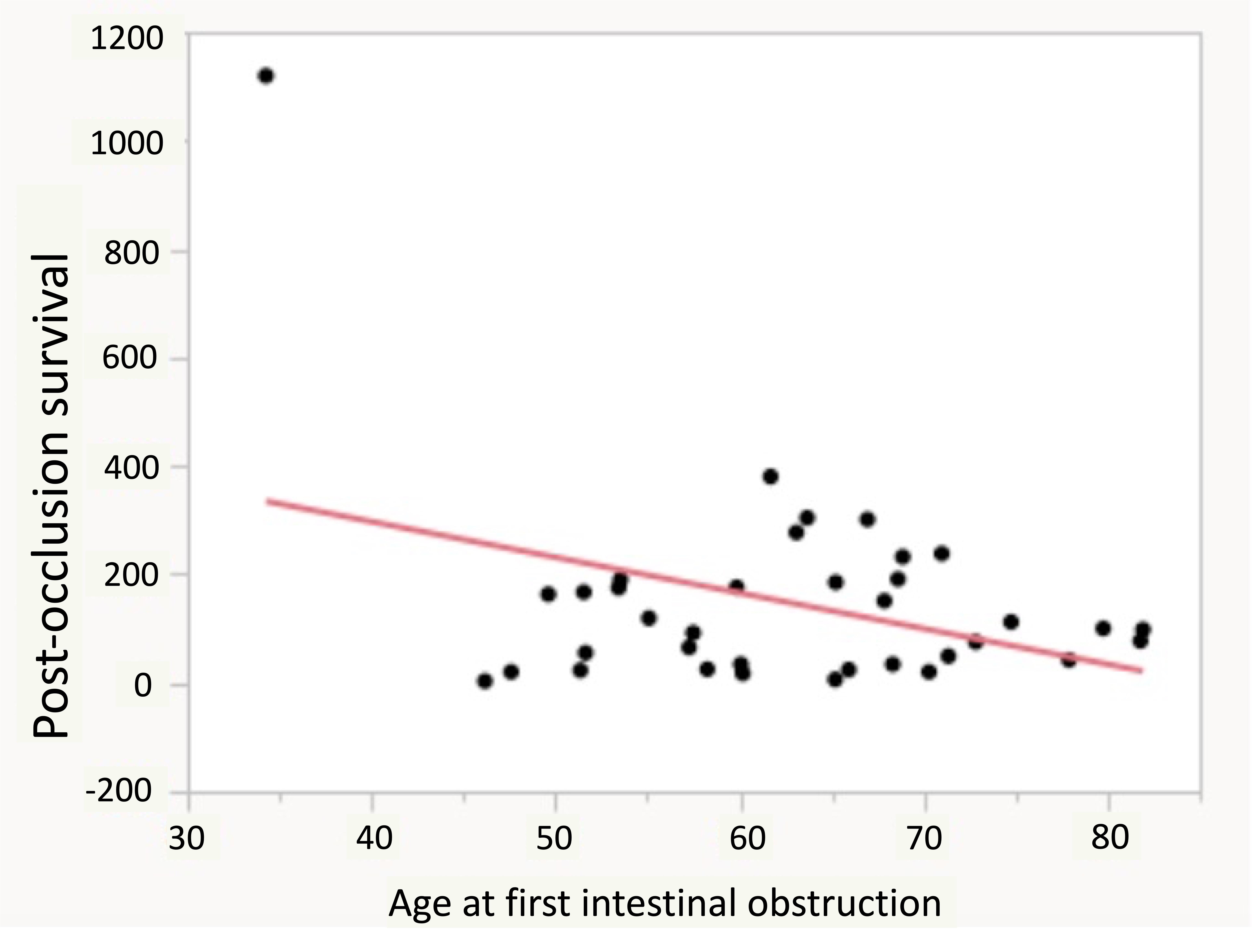 Fig. 5.Distribution of post-occlusion survival according to the intestinal occlusion diagnosis age.