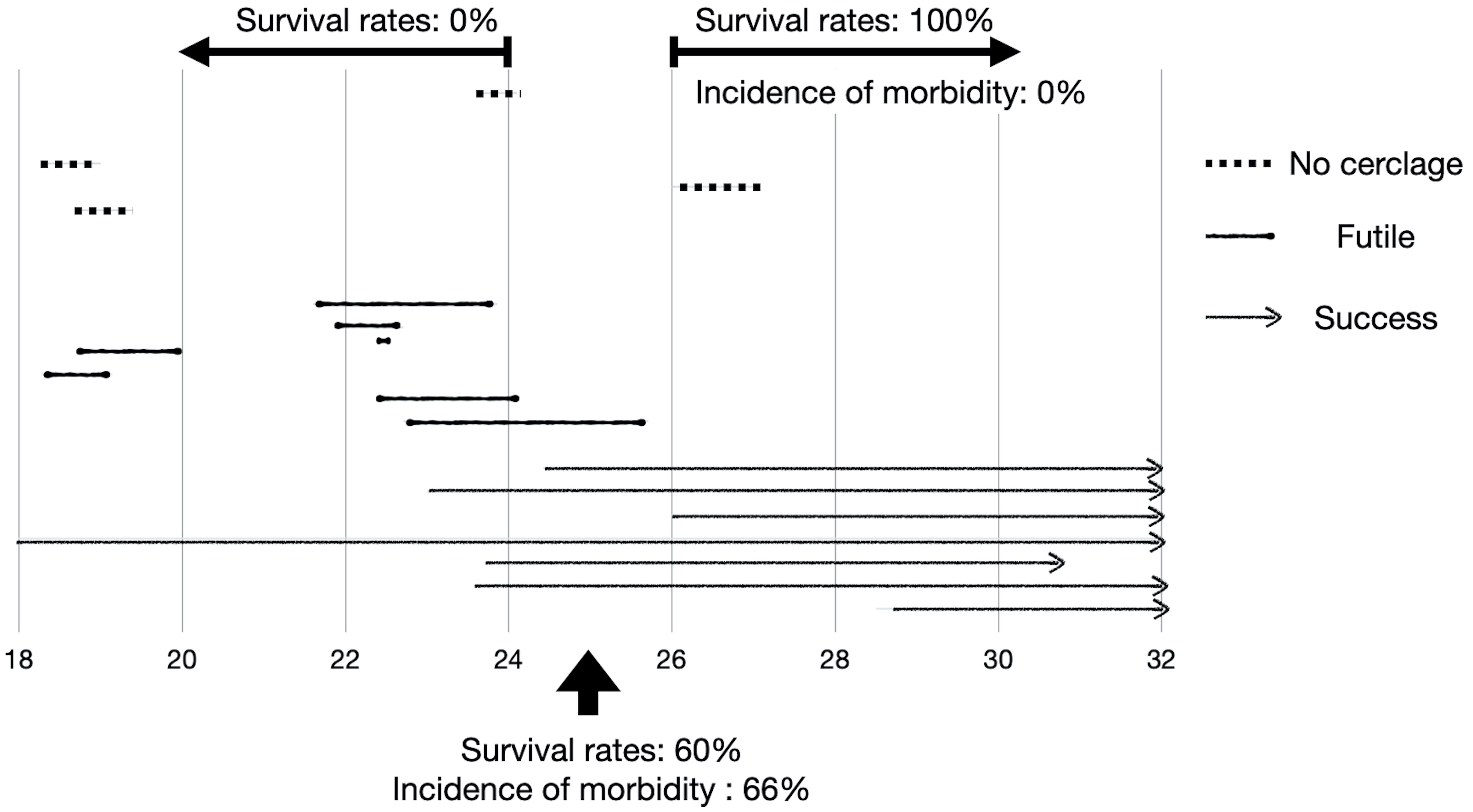 rates were 0%, 60%, 100% at a gestational age of