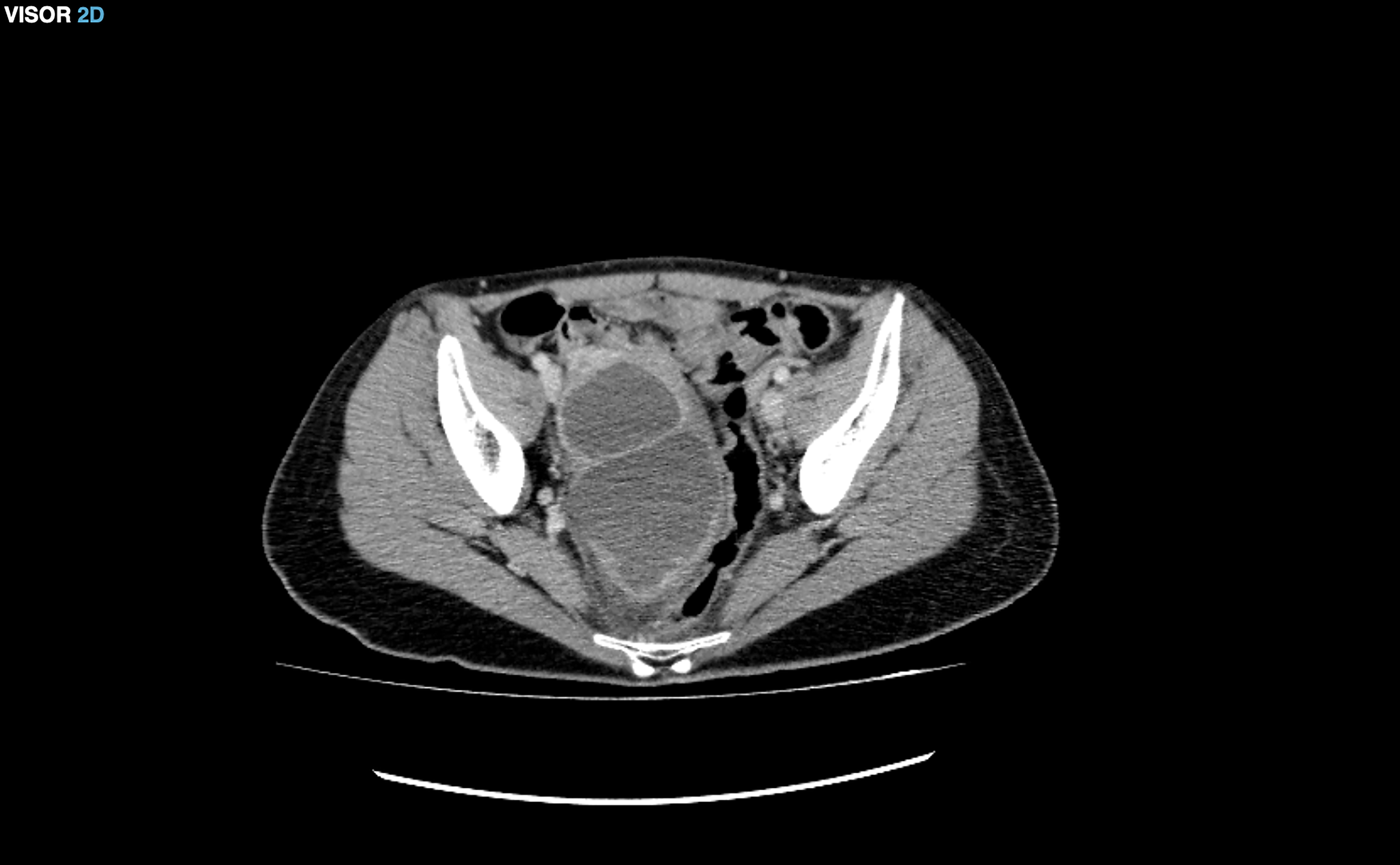 The patient came to the emergency department reporting intense abdominal pain and abdominal swelling for a month after having suffered a miscarriage at 6 weeks after a frozen embryo transfer performed at an external center. An emergency abdominal CT was performed, showing moderate ascites predominantly in the pelvic region (Fig. 2), which was initially treated with diuretics, albumin and anticoagulants.