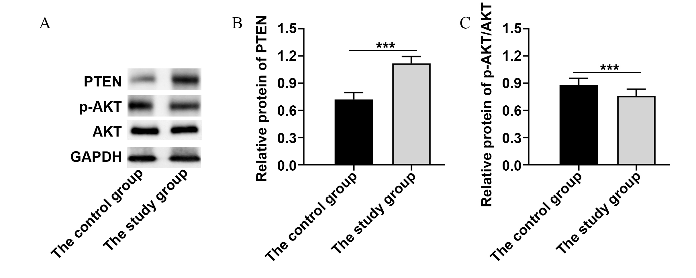 between control group and study group. (C) The relative protein of p-AKT/AKT