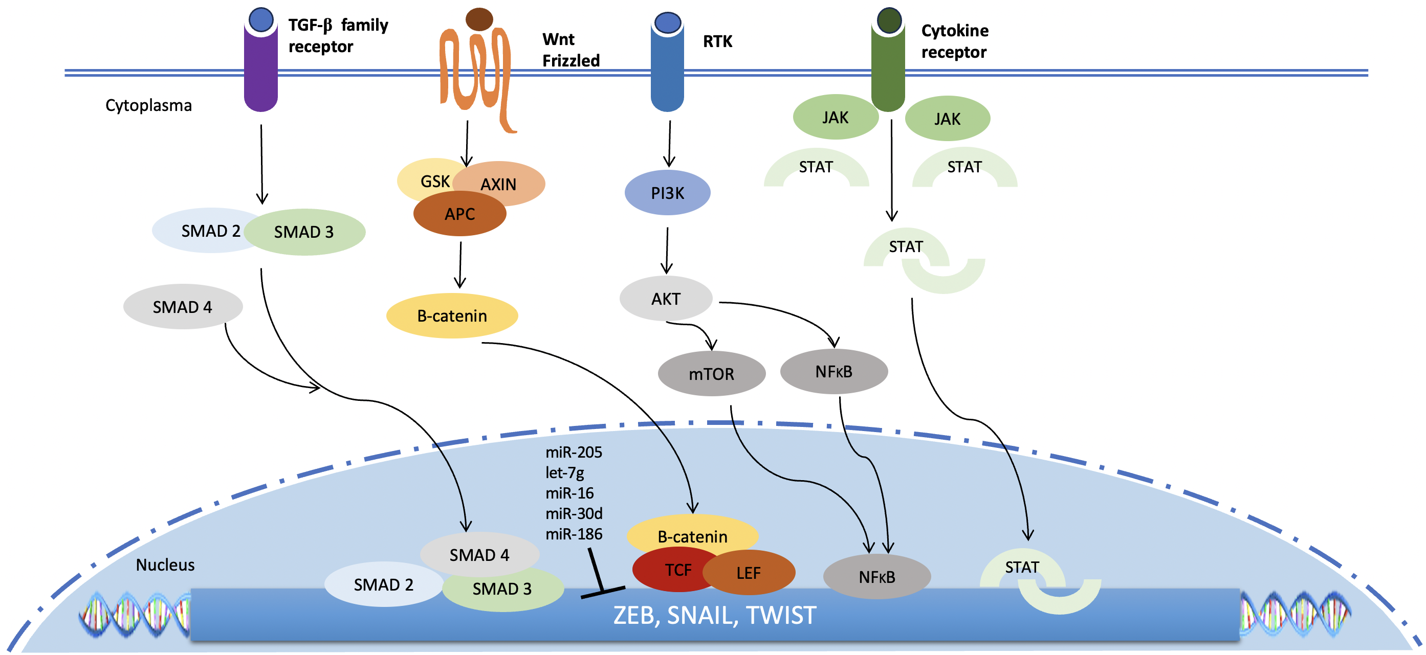 Fig. 2.Signaling pathways that regulate the induction of EMT. Several