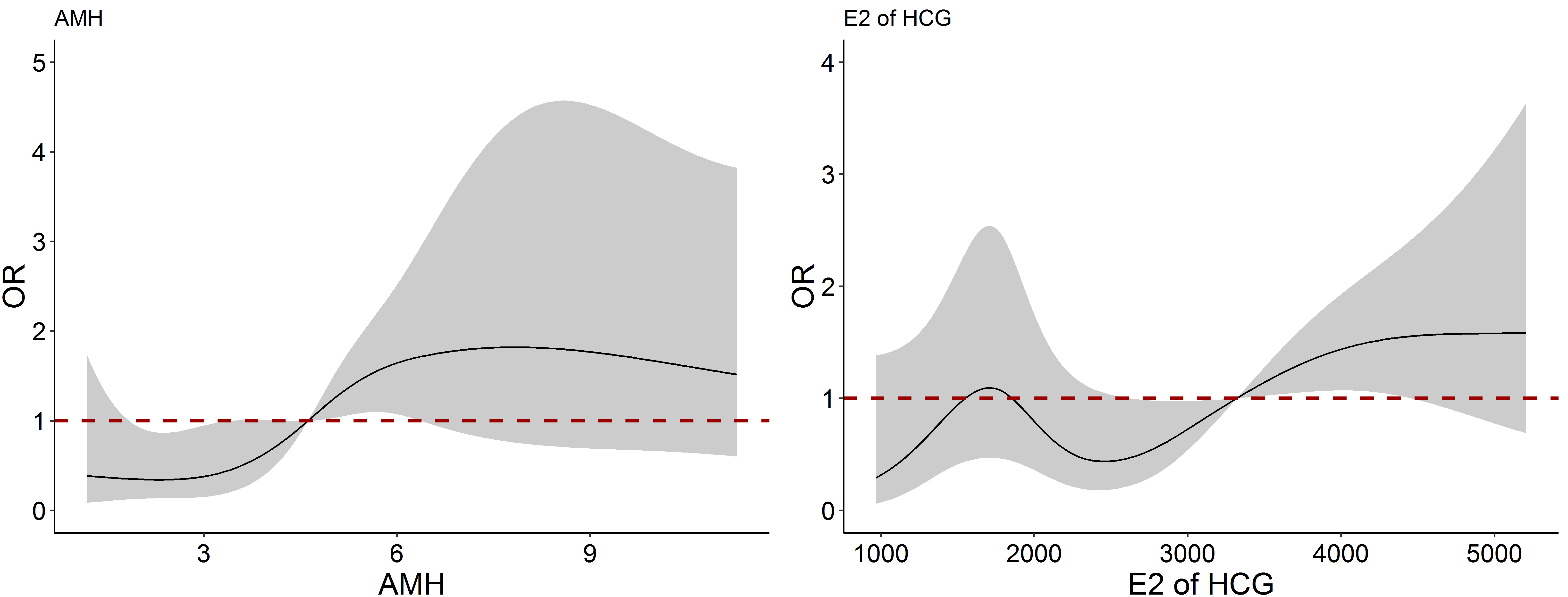 Fig. 3 presented the nonlinear association between AMH and E2 concentrations on