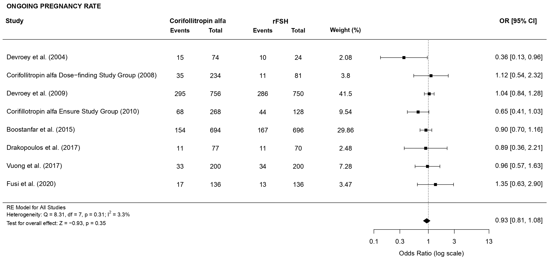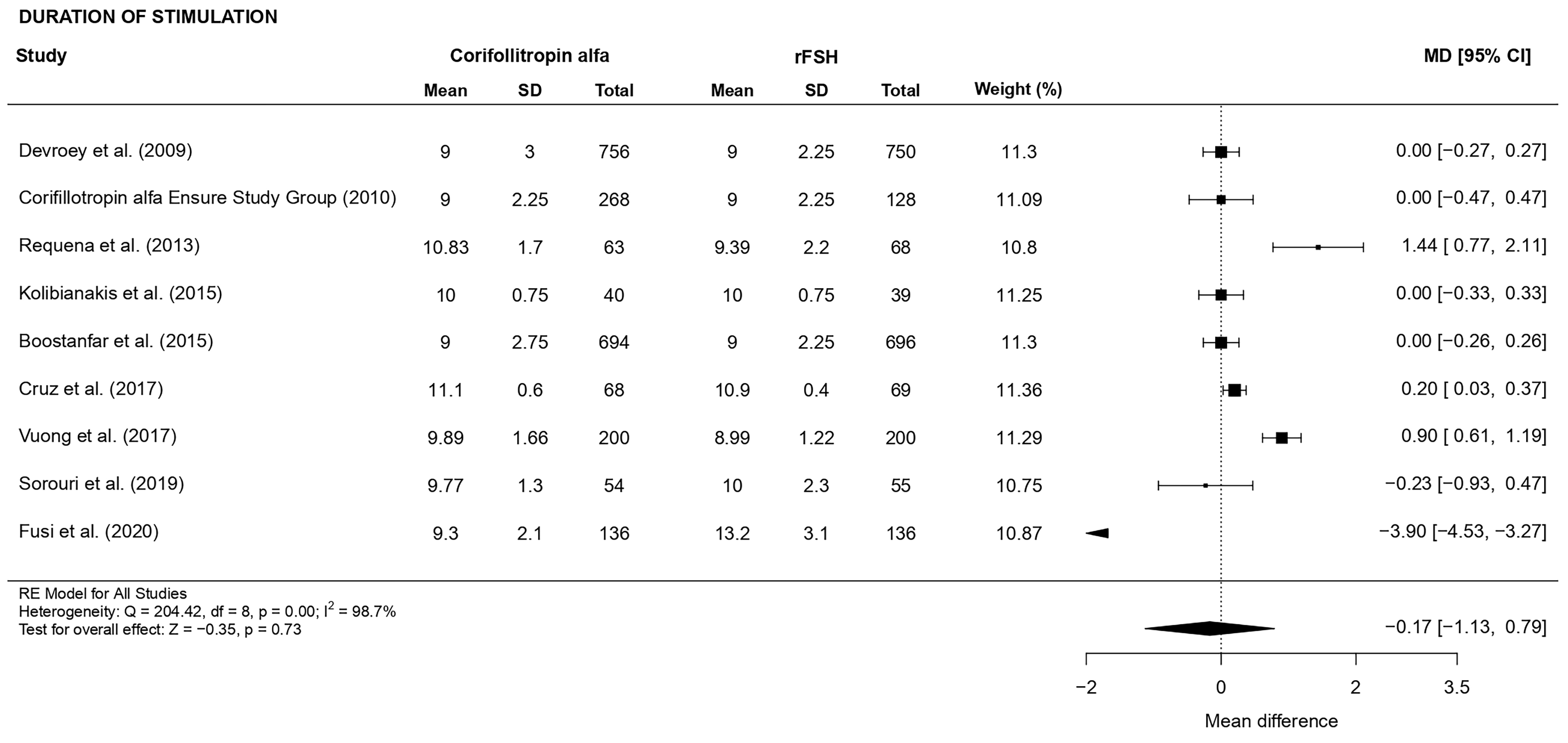 The present meta-analysis pooled the data from twelve RCTs focusing on the clinical effectiveness and safety of CFA compared to conventional daily rFSH.