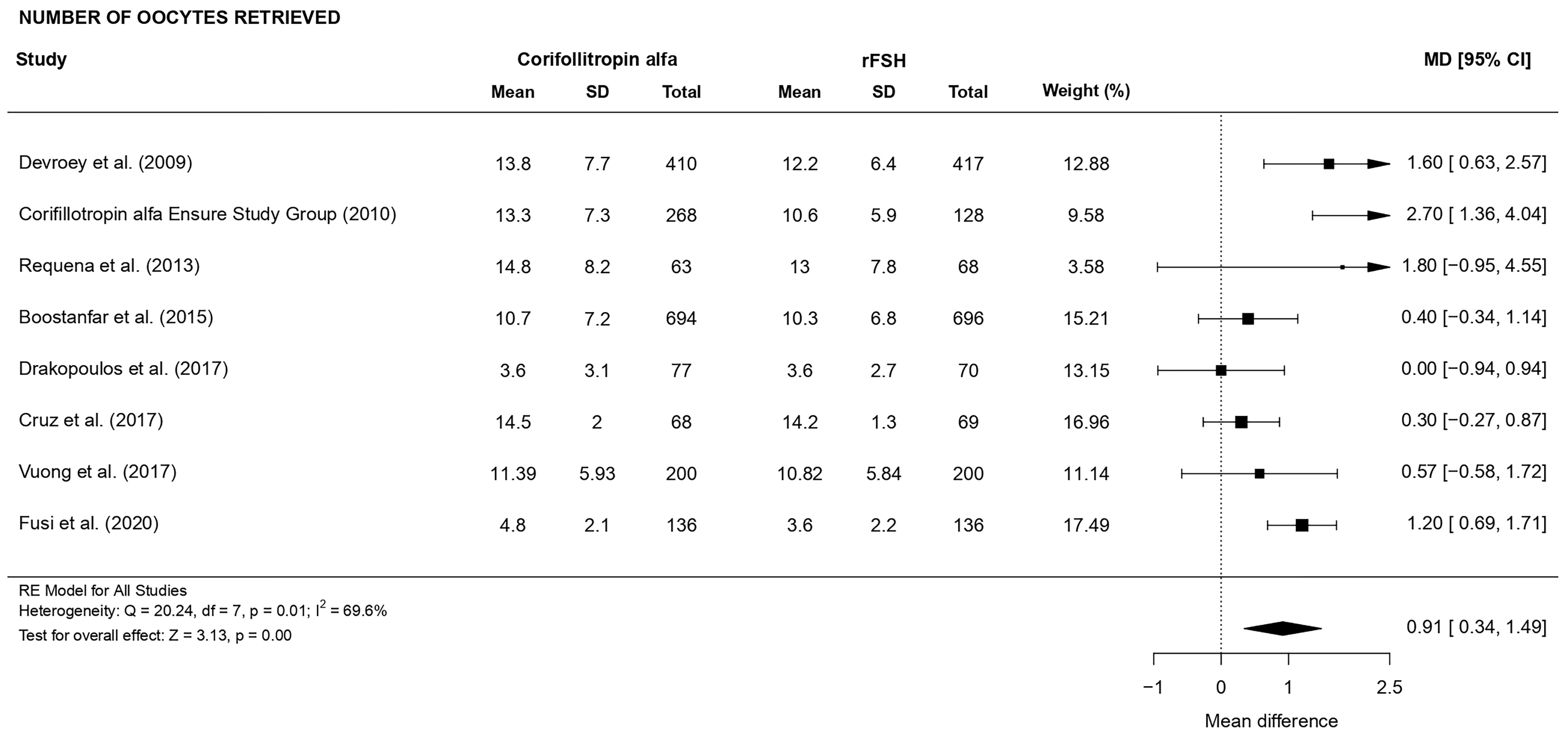analysis highlighted a higher number of both oocytes retrieved (MD 0.82, 95% CI