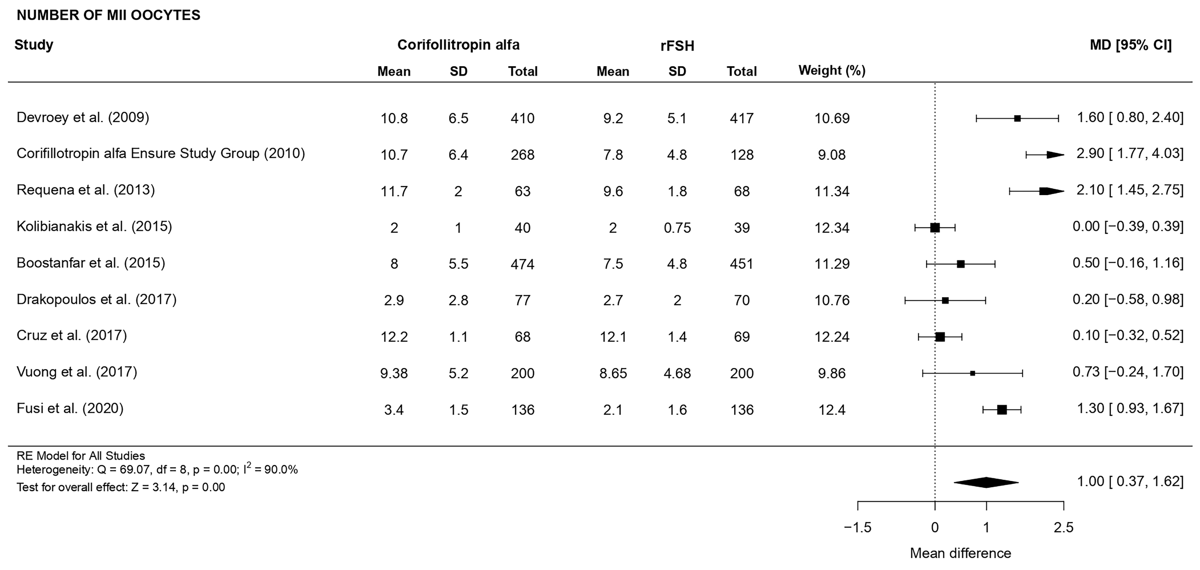 [0.29, 1.35], p = 0.002), MII oocytes (MD 0.91, 95% CI [0.33, 1.50],