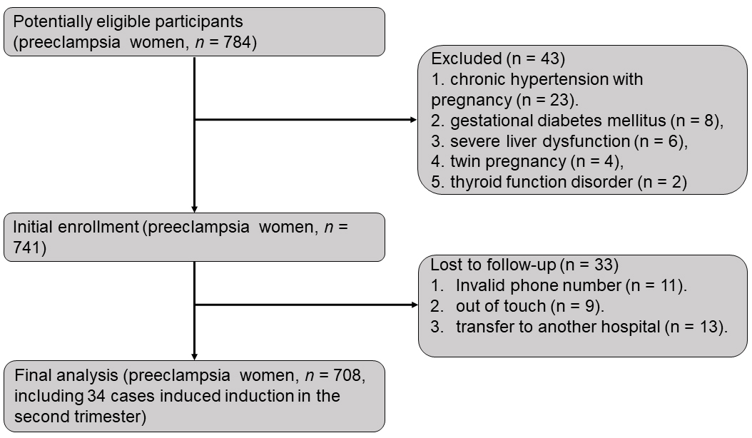 study evaluated 708 women with preeclampsia, and 738 healthy pregnant women were