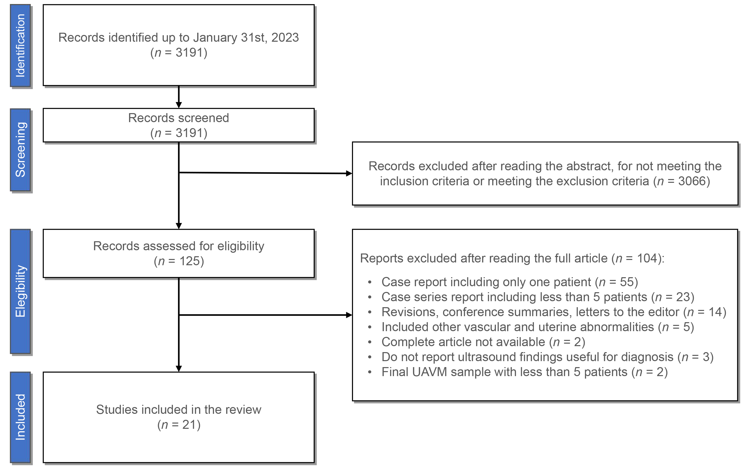 - Studies including other vascular and uterine abnormalities (n = 5).