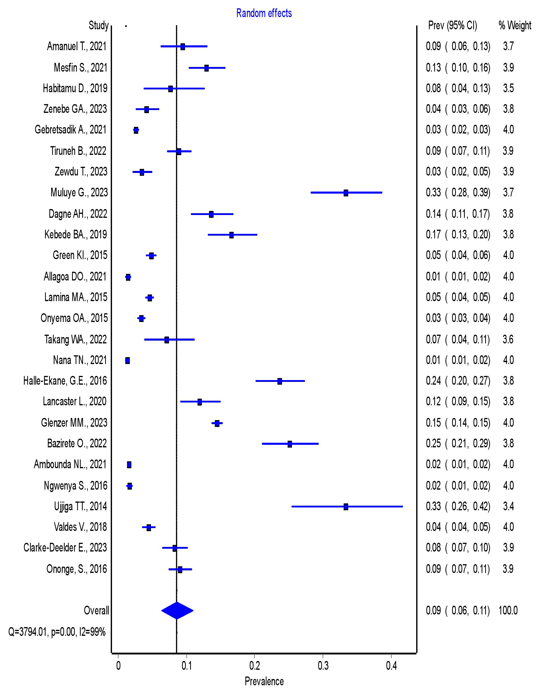 of PPH in SSA was 8.6% (95% CI = 6.4–11.0%), I2 = 99%,