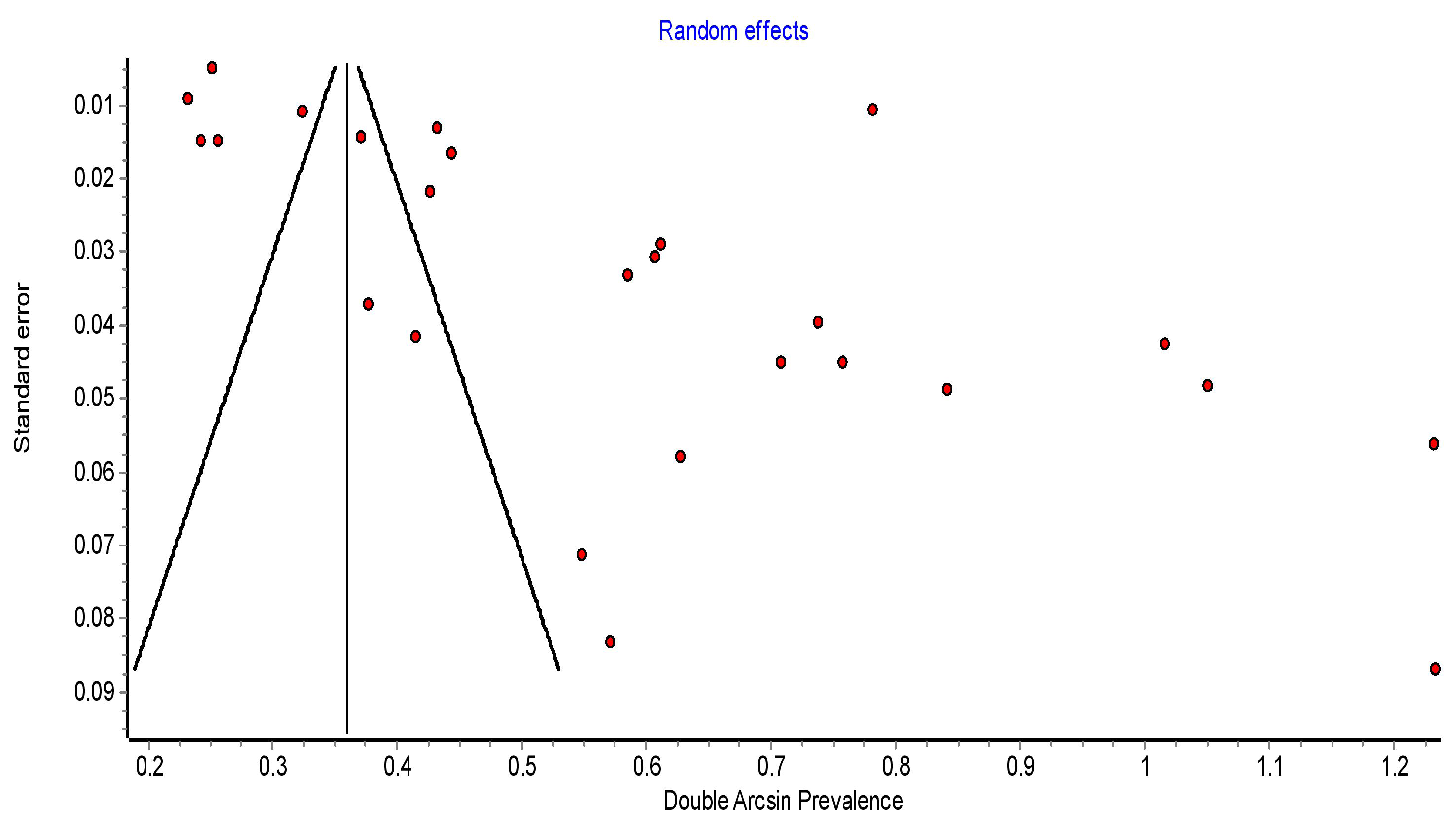 Funnel plot showing symmetrical distribution of articles on PPH in SSA. PPH, postpartum hemorrhage; SSA, sub-Saharan Africa.