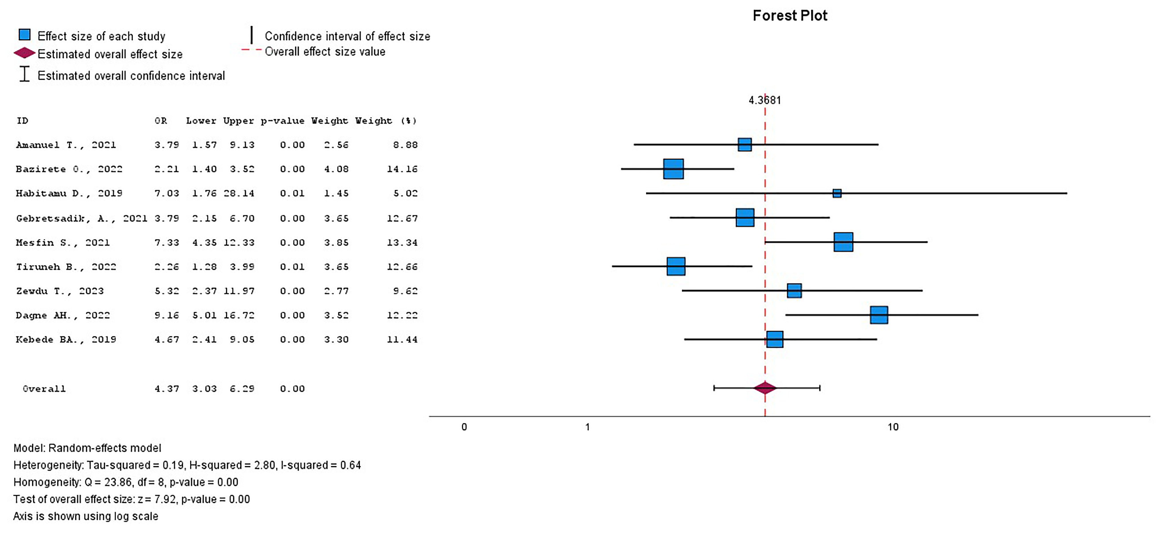 with an OR of 4.39 (95% CI = 2.01–9.61), I2 = 62%,