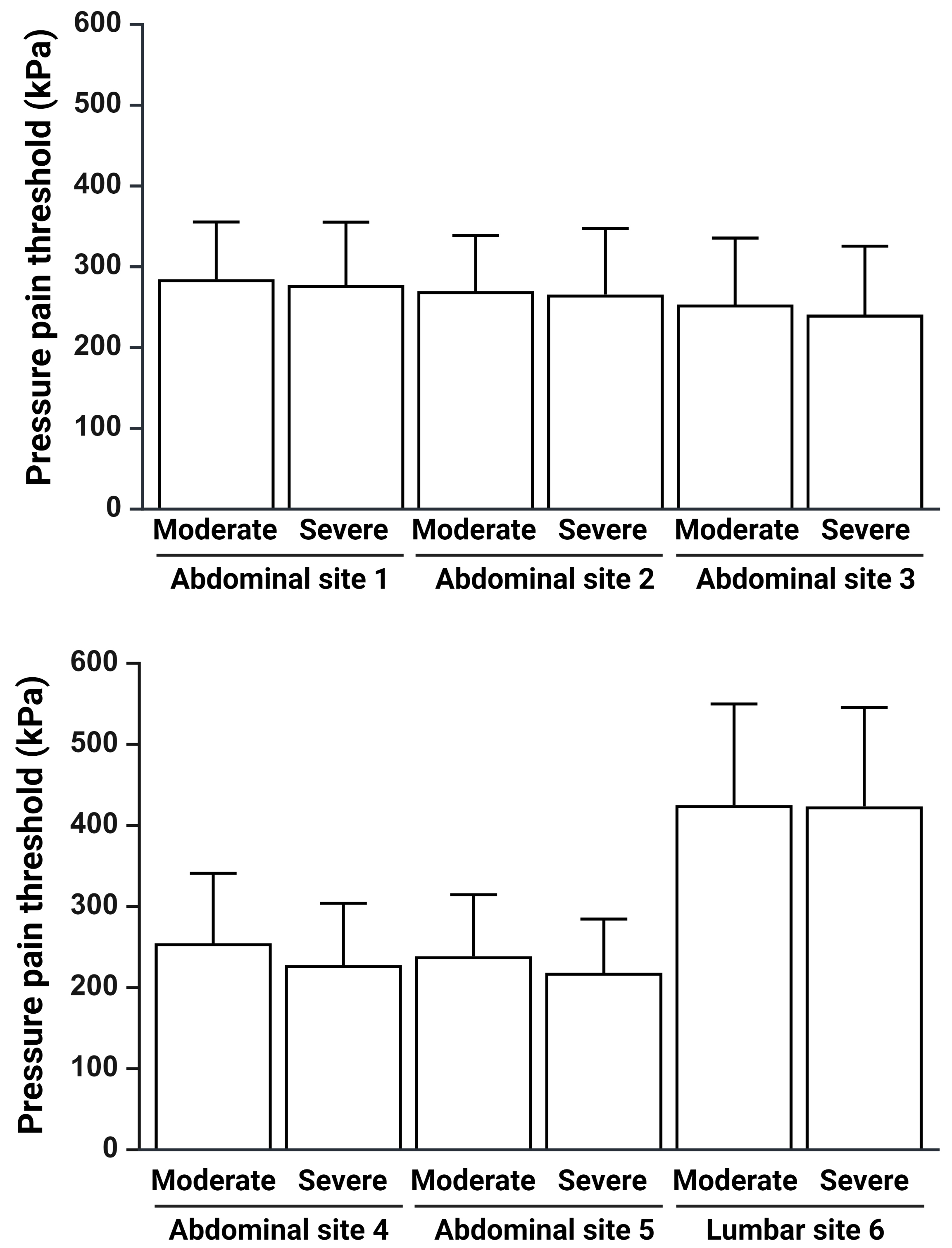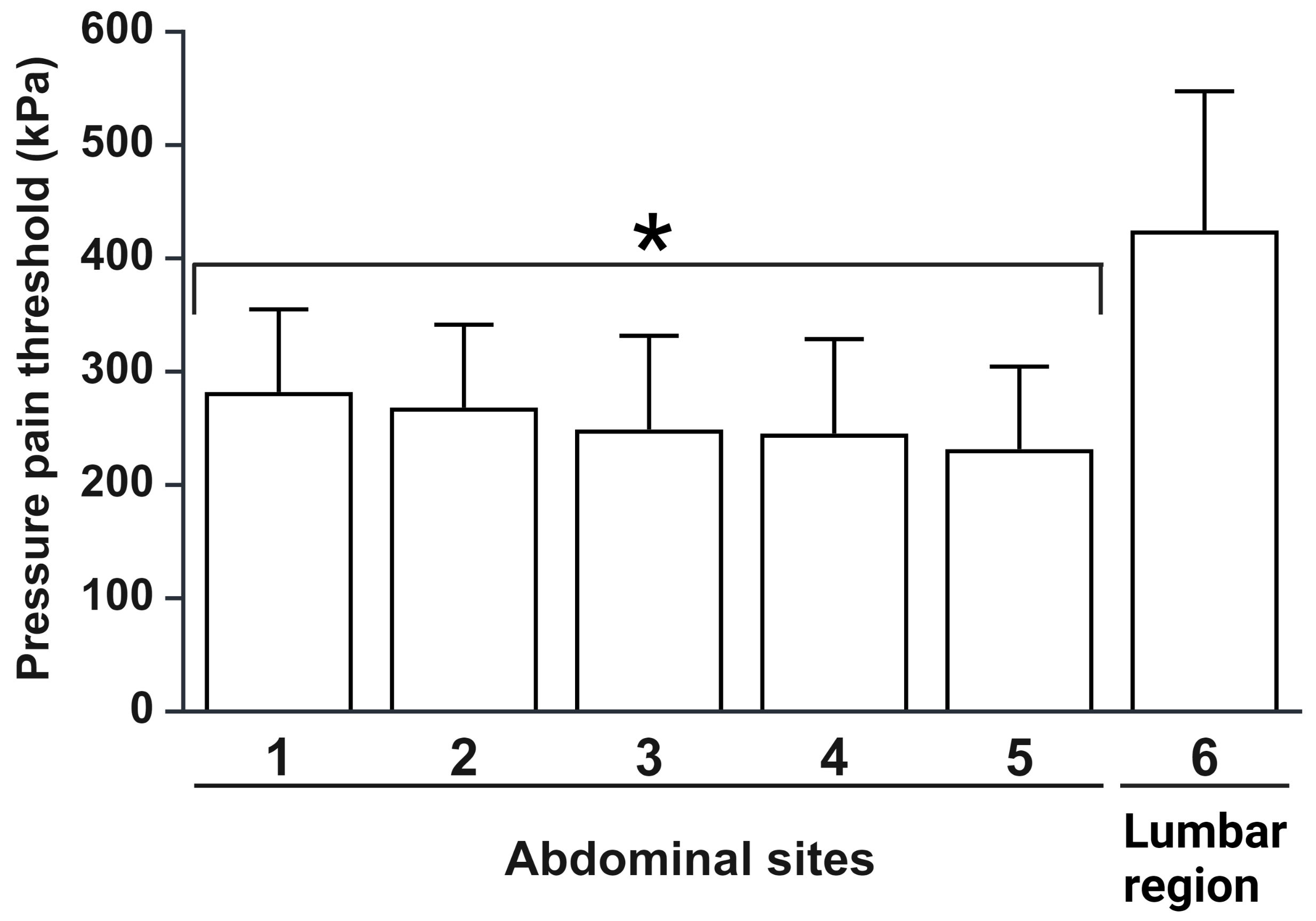 (points 1–5) were significantly lower than the threshold in the lumbar region
