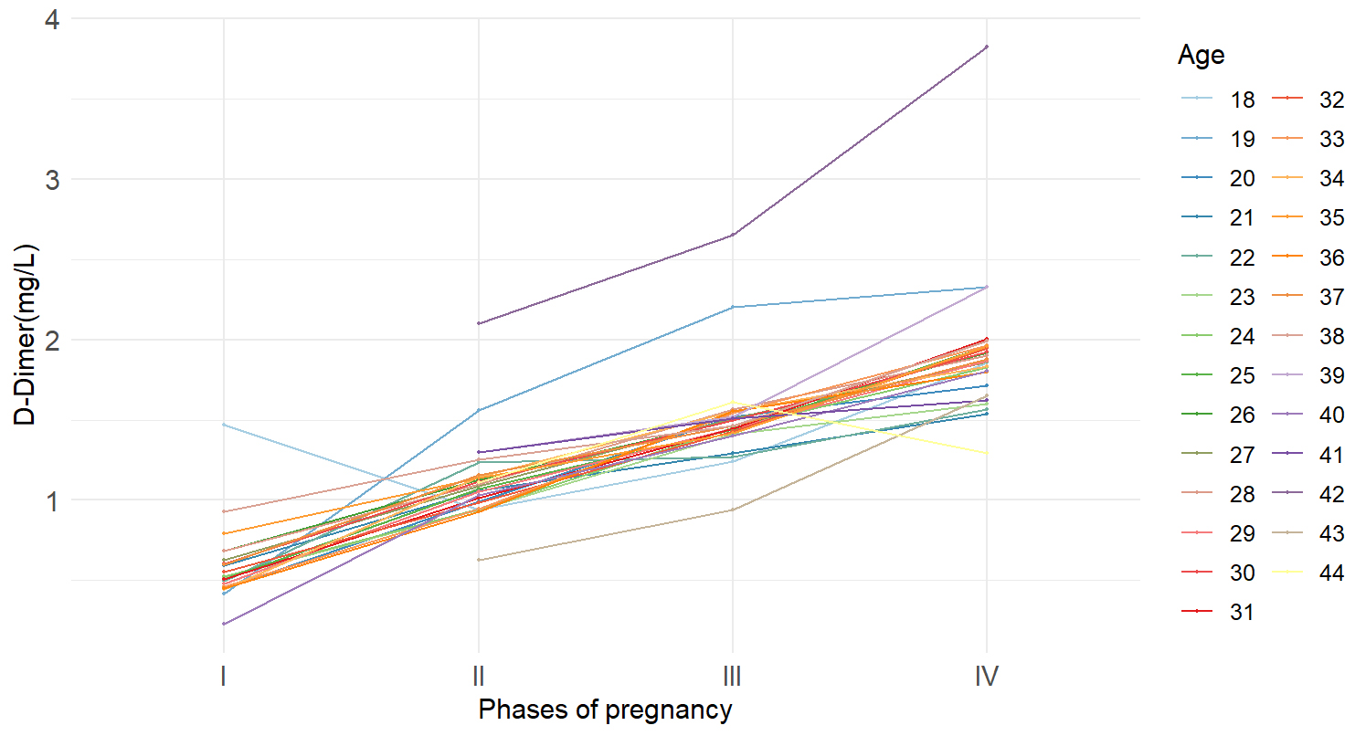 In summary, by screening big data from medical records, we calculated the mean D-dimer levels for each gestational week and established normal reference intervals for different pregnancy phases. This baseline is essential for clinical testing application and beneficial for managing pregnant women’s health. We also explored D-dimer levels’ predictive value in high-risk pregnancies, providing guidance for managing high-risk pregnant women early in pregnancy.