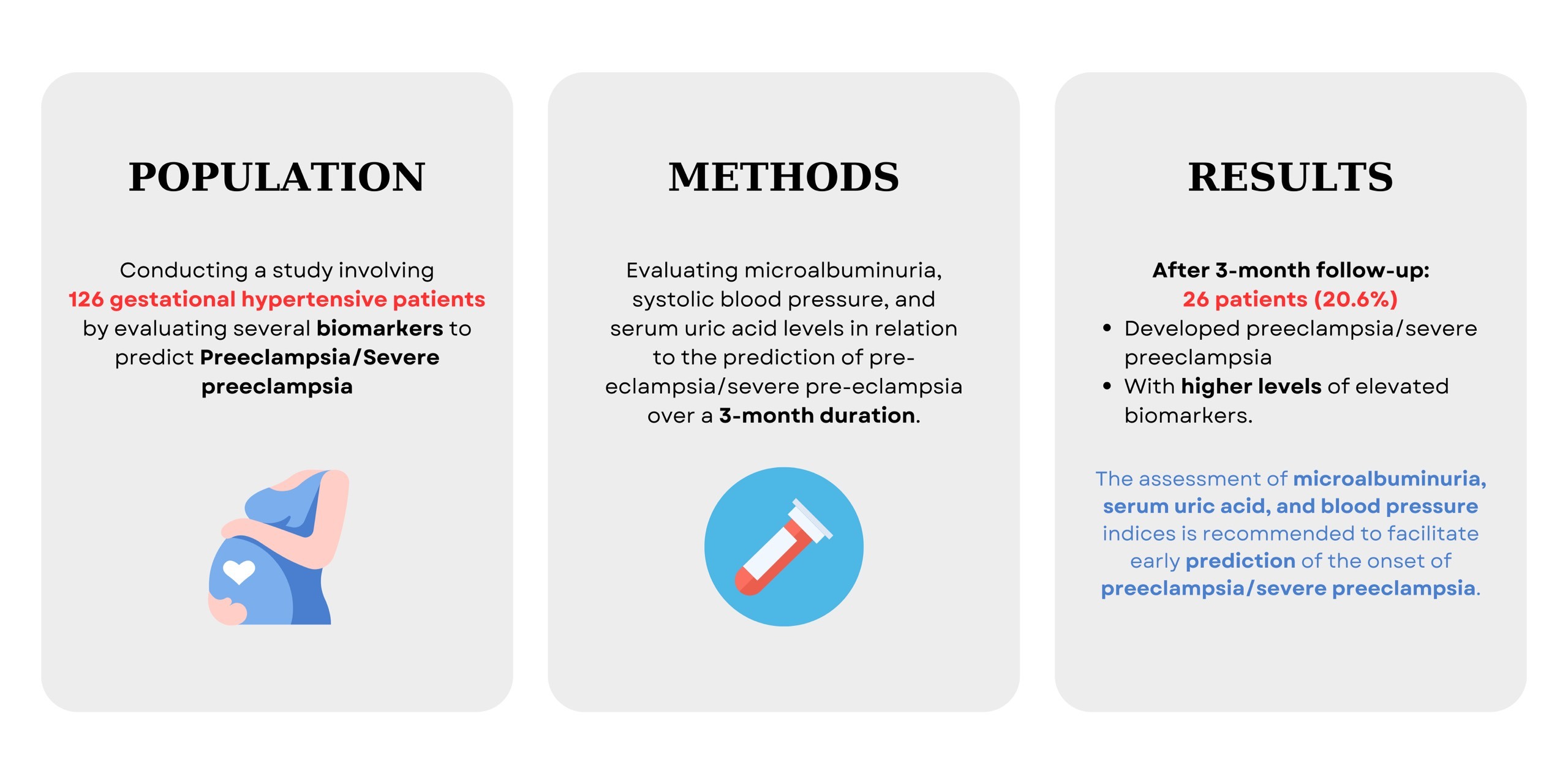 Previous studies have shown that individual biomarkers like UA, creatinine, and cystatin C can predict the risk and outcomes of preeclampsia [9, 10]. However, these studies focused on the prognostic value of single markers Our study addresses this gap in current research by evaluating multiple biomarkers simultaneously, providing a more comprehensive approach to predicting preeclampsia and severe preeclampsia in patients with gestational hypertension. By integrating several biomarkers, we aim to enhance prognostic accuracy and improve the identification of high-risk pregnancies. This novel method holds the potential to inform more effective diagnostic and management strategies, ultimately reducing complications for both mothers and infants.