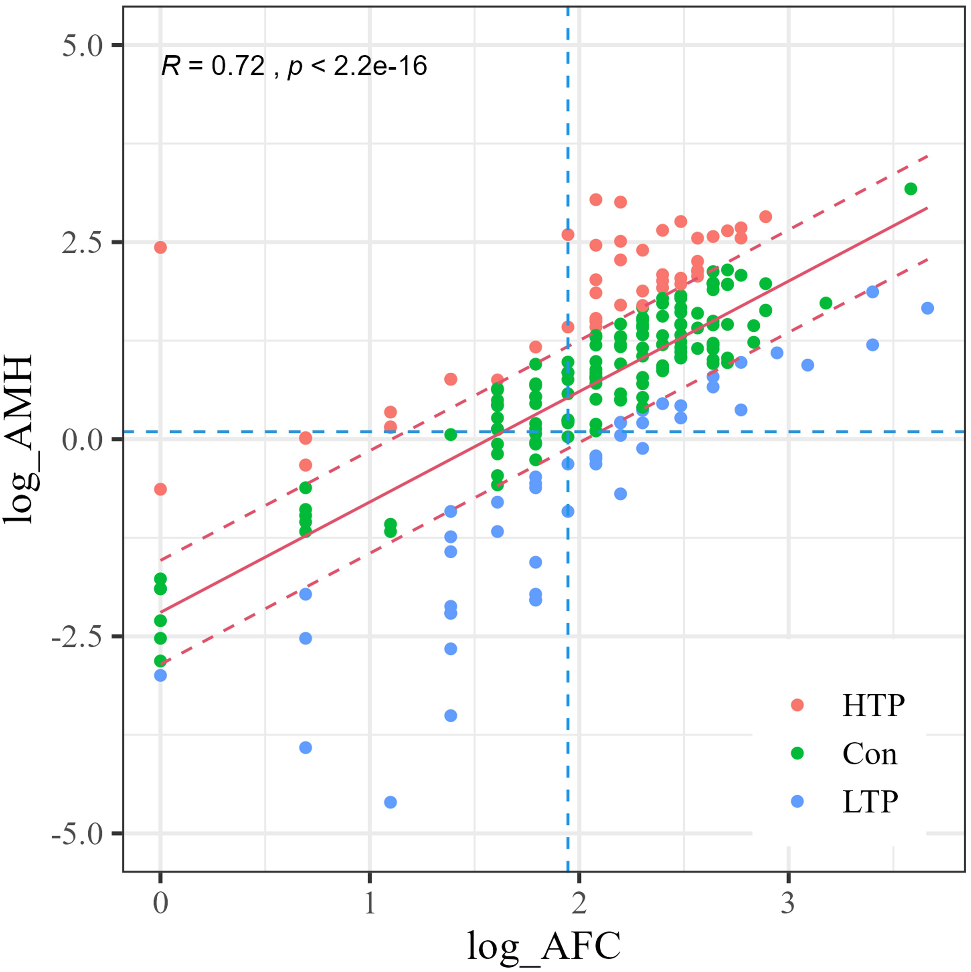 (3) LTP group: patients with lower AMH levels than those predicted based on AFC.