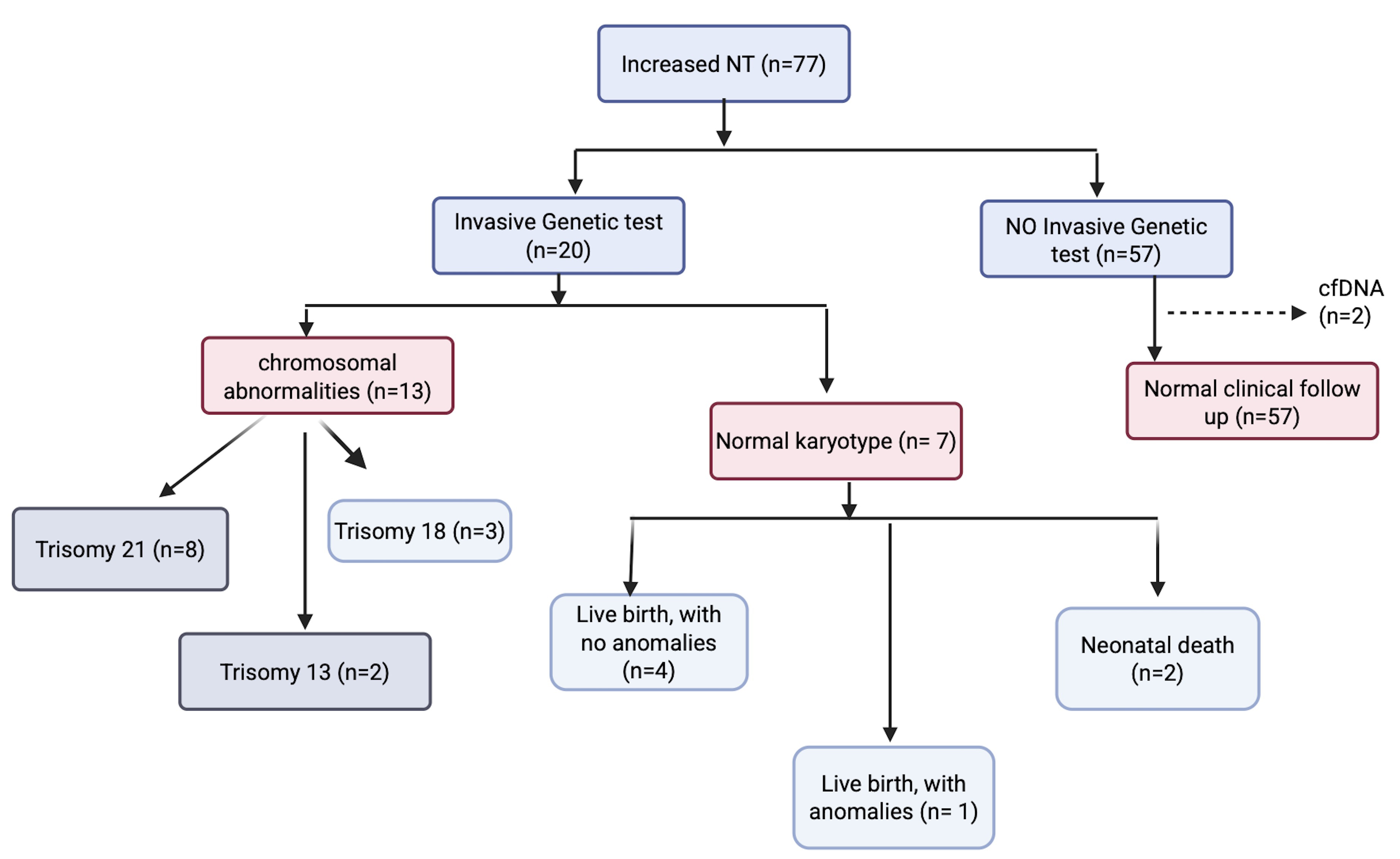 Flow chart of a Panamanian cohort of increased nuchal translucency (NT). cfDNA, cell free DNA.