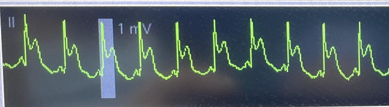 A 44-year-old female underwent hysteroscopic surgery for endometrial and cervical polyps, which were accompanied by increased menstrual flow. During the procedure, oozing from the wound was observed. To promote uterine contraction, oxytocin (10 U) was administered in 100 mL of 0.9% normal saline (NS) via slow intravenous infusion. Five minutes after the infusion, ST-segment elevation in lead II was noted. Oxytocin was immediately discontinued, and symptomatic treatment, including esmolol, was initiated. Under continuous cardiac monitoring, the dosage of medications was gradually adjusted, leading to the stabilization of vital signs, including blood pressure, heart rate, oxygen saturation, and respiration. The patient was discharged on the fifth postoperative day and has since been regularly followed up in the cardiology clinic. To date, no abnormalities have been observed.