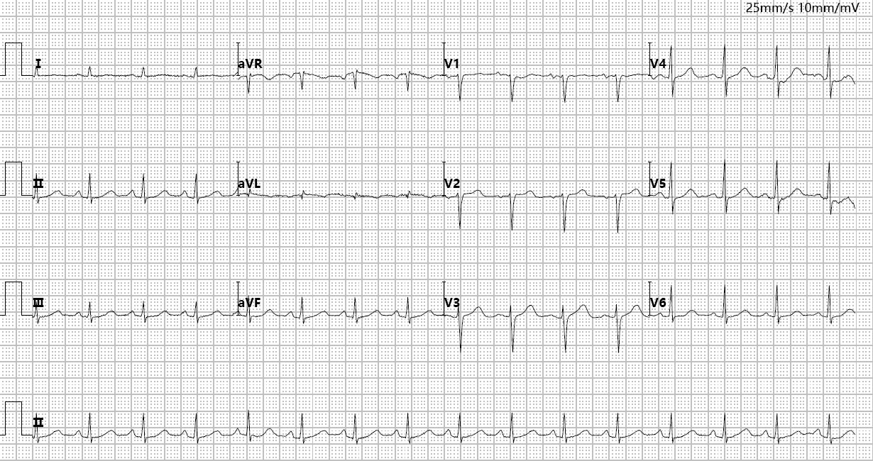 Preoperative routine ECG. aVR, augmented vector right; aVL, augmented vector left; aVF, augmented vector foot; ECG, electrocardiogram.
