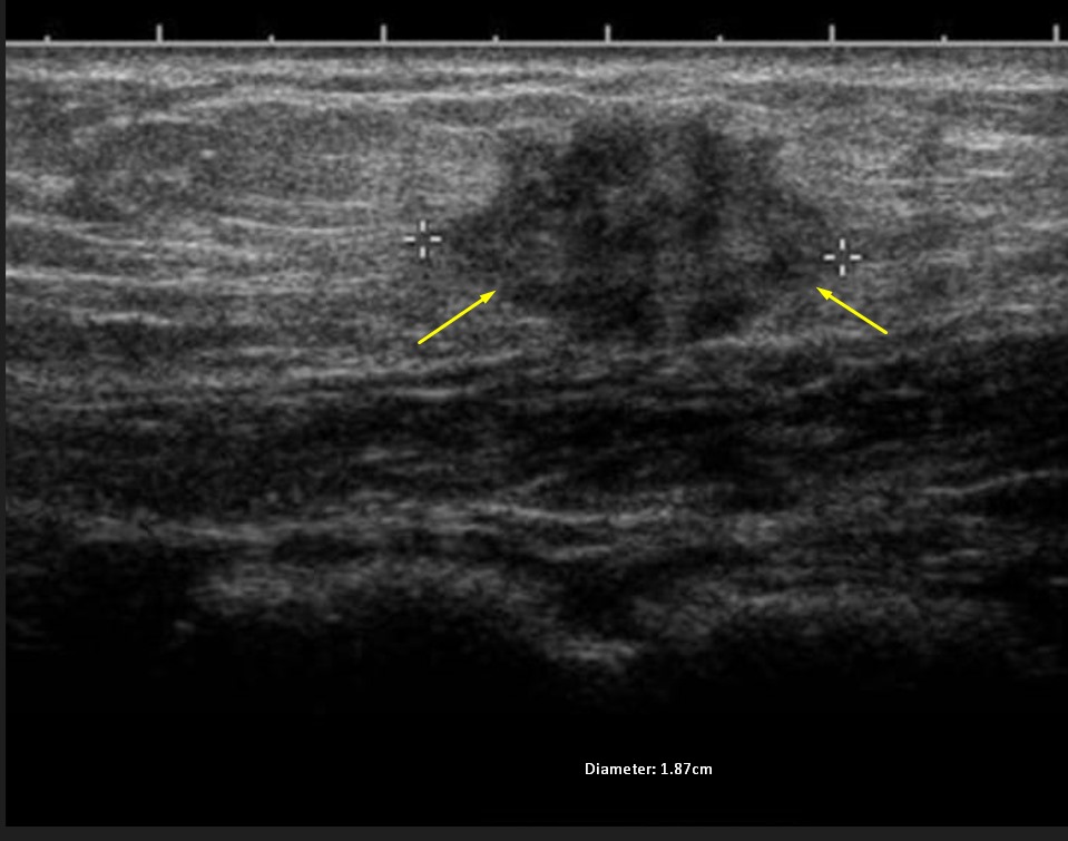 Fig. 4. Superficial ultrasonography of abdominal wall endometrioma.