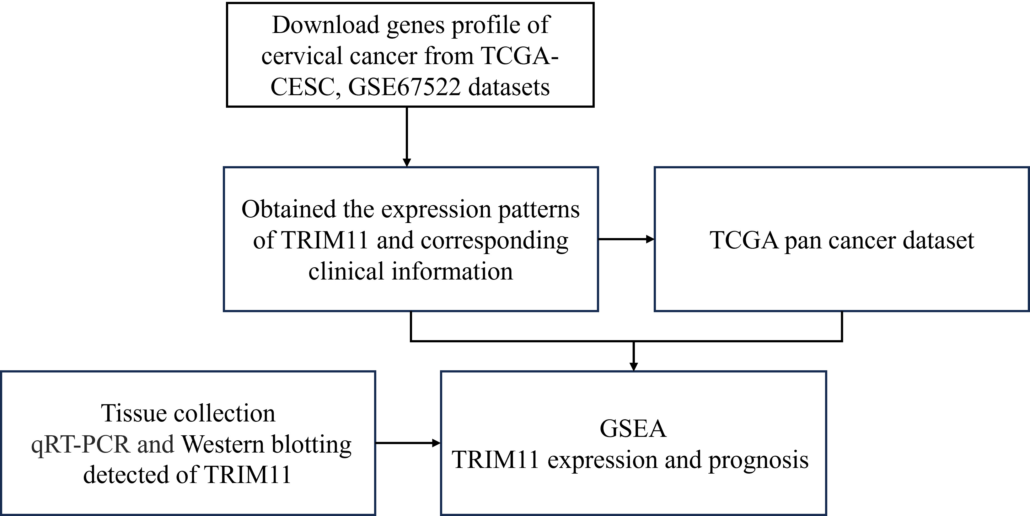 Workflow of the study. TCGA, The Cancer Genome Atlas; TRIM11, Tripartite motif-containing 11; GSEA, Gene set enrichment analysis; qRT-PCR, quantitative reverse transcriptase PCR; CESC, cervical squamous cell carcinoma.