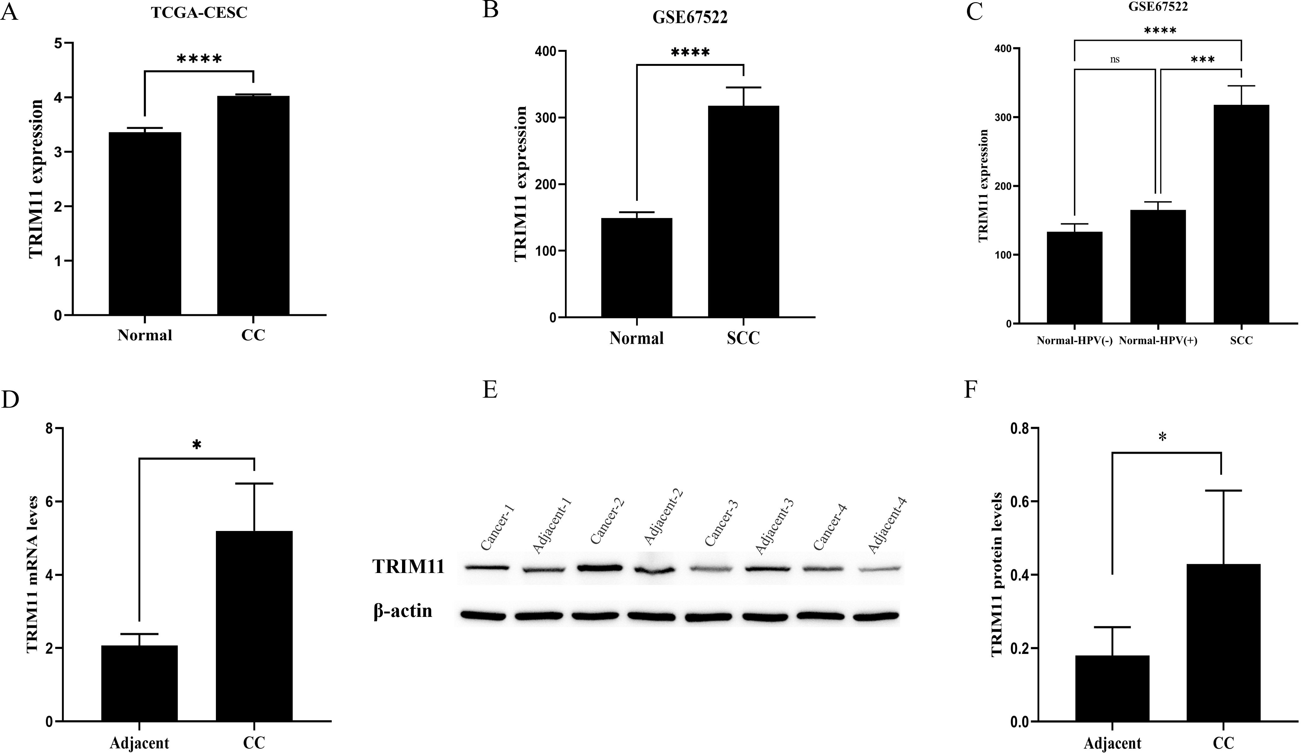 TRIM11 was found to be overexpressed in CC tissues in the TCGA-CESC and GSE67522