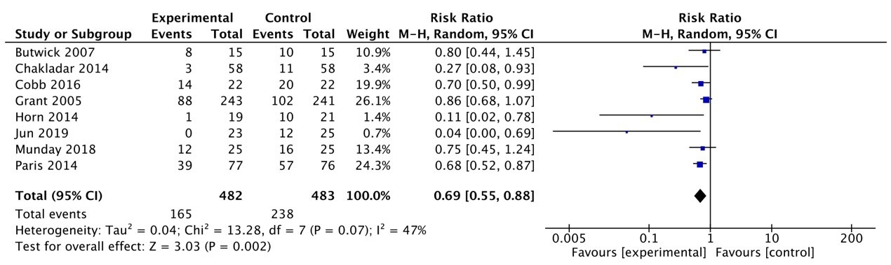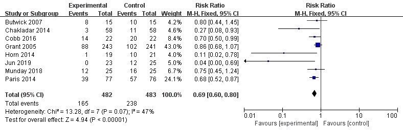in the control group [RR = 0.69, 95% CI: (0.60, 0.80), p