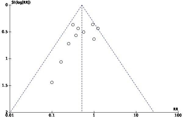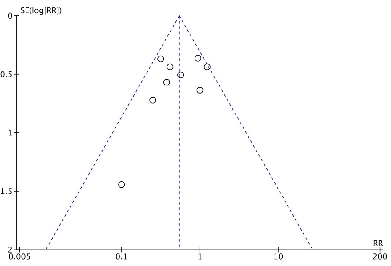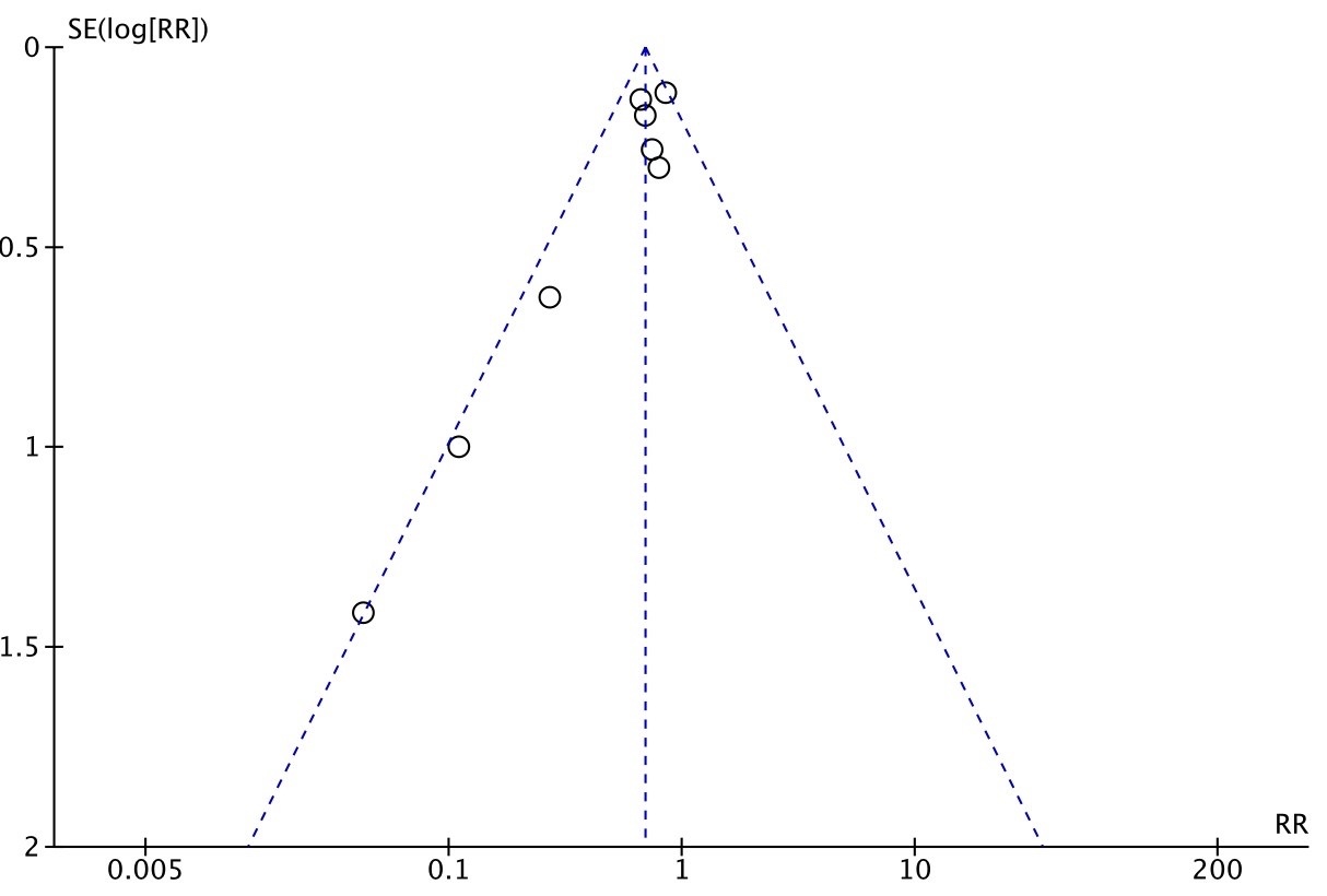 Funnel plot of the meta-analysis of incidence of hypothermia.