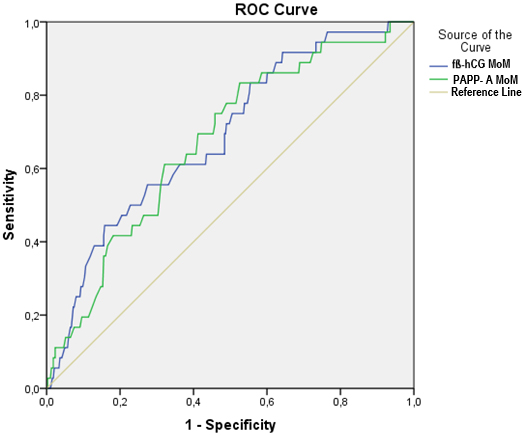 ROC curve analysis in our study showed that PAPP-A MoM and f