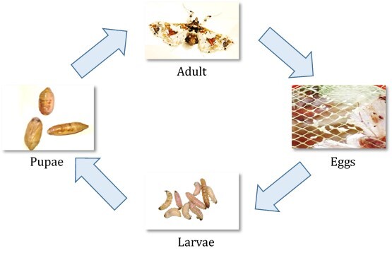 Figure 1Life cycle of Leucinodes orbonalis Guenee.