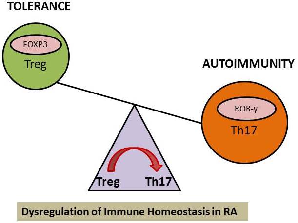 Figure 2Immune dysregulation in RA: Inefficient/Loss of suppressor mechanism of Tregs.