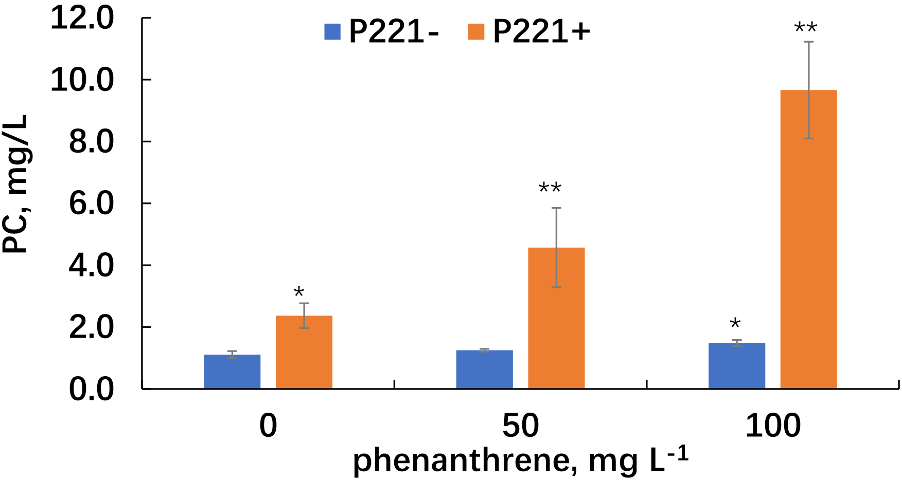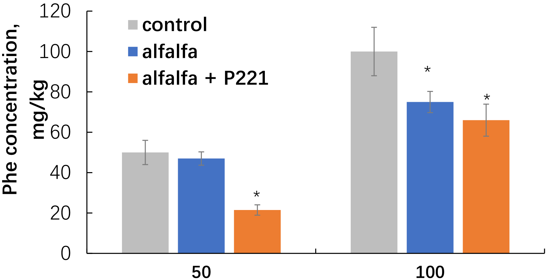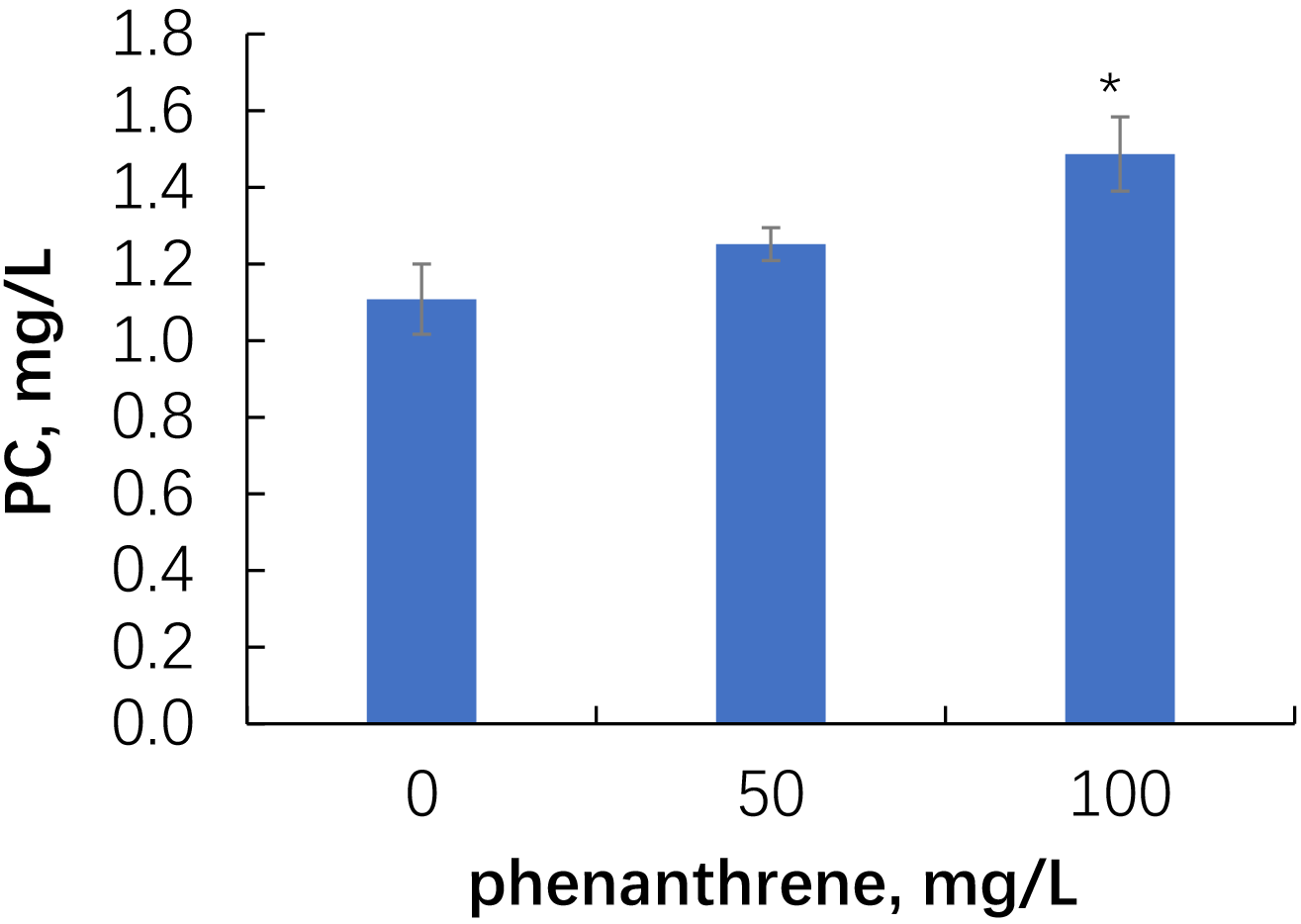 tended to increase, and at 100 mg/kg of phenanthrene, the content of phenolic
