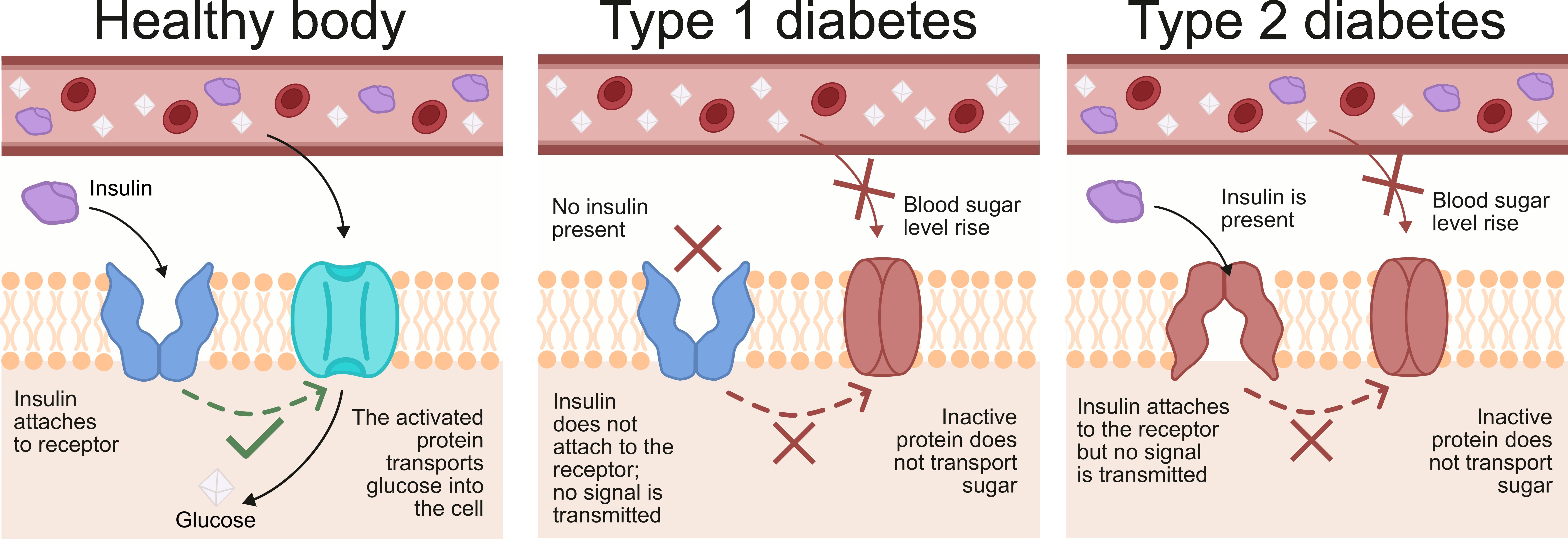 Diabetic wounds are one of the most common and challenging complications of diabetes. Similar to chronic wounds, diabetic wounds are difficult to treat due to prolonged inflammation, a lack of angiogenesis, abnormal differentiation of new scar tissue, and the occurrence of numerous bacterial infections. Moreover, elevated sugar levels in tissues disrupt the healing process by enhancing inflammatory reactions, disrupting signaling pathways, and leading to the production of abnormal biological structures, which contribute to improper cell differentiation. Traditional dressings, such as bandages, gauze, and semi-occlusive foams, are inadequate for diabetic wounds with high exudation; moreover, frequently changing the dressing can cause secondary irritation. Hence, innovative hydrogel dressings are being developed, which, thanks to their soft polymer matrix, provide an ideal substrate for regenerating tissue. Hydrogels also allow for the introduction and controlled release of growth factors, making them a promising solution for treating diabetic wounds. Recently, researchers have focused on insulin, a hormone secreted by the human body to lower blood sugar levels, due to its interesting characteristics, such as supporting anti-inflammatory and proangiogenic processes and stimulating cell migration and proper proliferation. This review discusses the most important aspects of diabetes and diabetic wounds and traditional and innovative treatment methods, particularly hydrogel dressings used as systems for insulin delivery in response to glucose concentration.